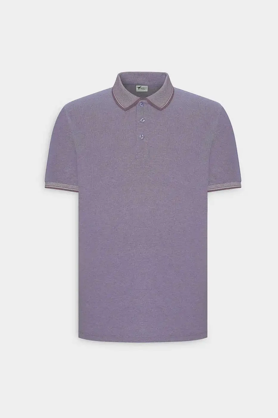 Мужская футболка, поло воротник, облегающий крой, хлопковая, безусадочная ткань, фиолетовый белый, не скручивающийся воротник, летняя коллекция, Altınyıldız Classics, повседневный