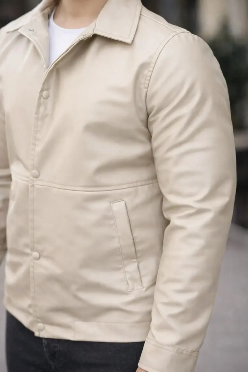 Erkek Çıt Çıtlı Deri Ceket-Krem deri