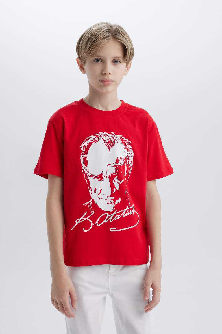 29 Ekim tişört, çocuk bayram tişörtü, Atatürk baskılı tişört, erkek çocuk tişört, kırmızı tişört, Cumhuriyet Bayramı kıyafetleri, bisiklet yaka tişört, kısa kollu tişört, pamuklu tişört, bayramlık tişört