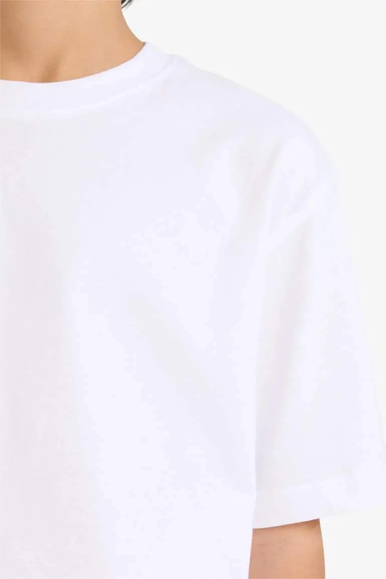 Kichkina janoblar uchun mukammal tanlov bo'lgan bu oq futbolka har bir bolaning shkafida bo'lishi kerak bo'lgan asosiy kiyim. Paxta matosidan tikilgan futbolka, yumshoq to'qimasi bilan farzandingizning terisiga qulaylik beradi. Futbolka yoqasi zamonaviy ko'rinish beradi. Qisqa yenglari yoz oylarida salqin bo'lishini ta'minlaydi.