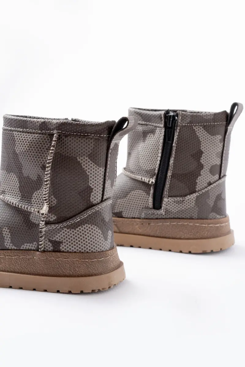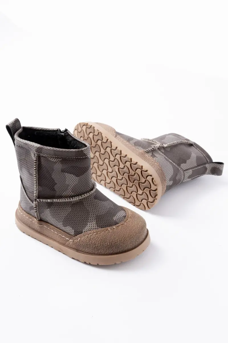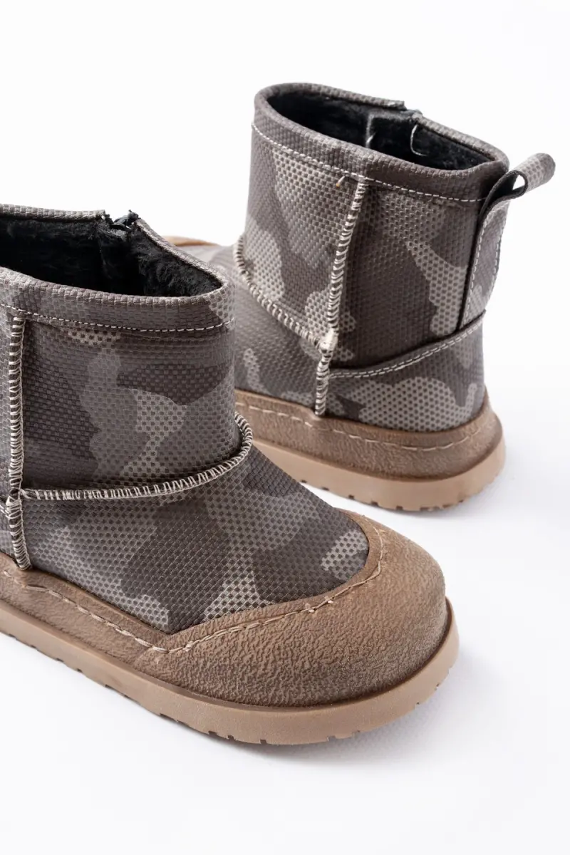 Erkek Çocuk Kamuflaj Desenli Tüylü Su Geçirmez Kaydırmaz Taban Bot-Haki