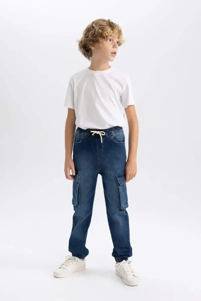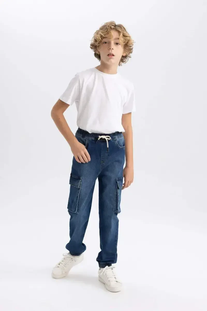 Erkek Çocuk Kargo Jogger Esnek Bantlı Paça Jean Pantolon, oyun alanından sokak modasına kadar her an için mükemmel bir tercihtir. Çocuğunuzun tarzını ve rahatlığını ön plana çıkaran bu pantolonu hemen sipariş edin!