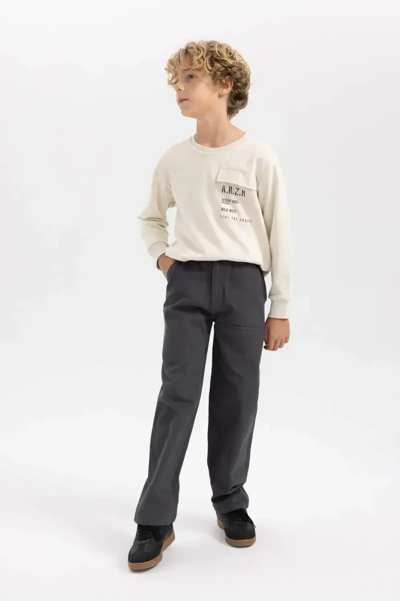 Erkek çocuk loose fit standart paça gabardin pantolonumuz, çocuğunuzun gardırobunda olmazsa olmaz bir parça olacak. Hemen sipariş verin ve çocuğunuzun şıklığını ve rahatlığını bir araya getirin!