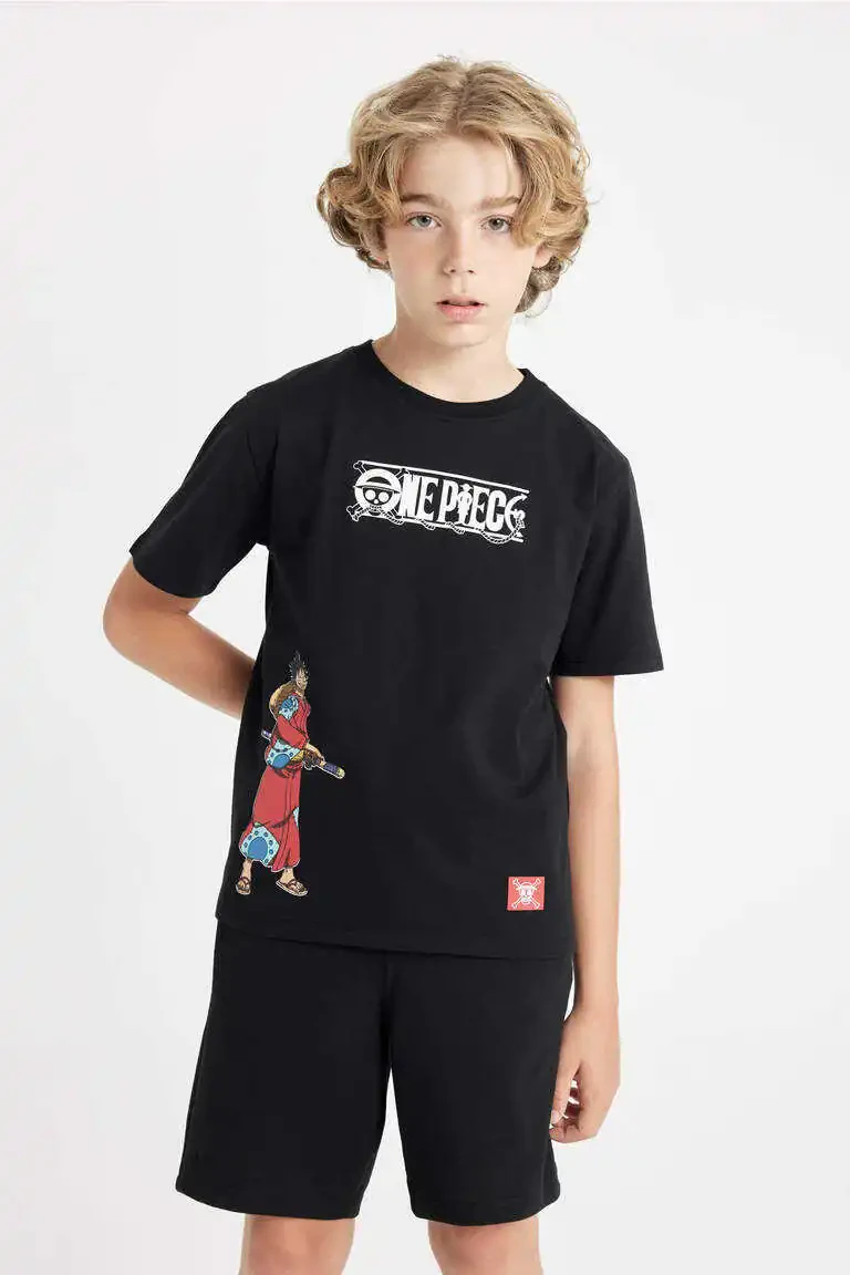 One Piece Boys' Bike Neck Short Sleeve T-Shirt - Black