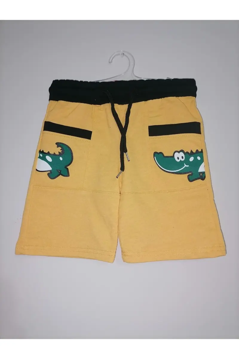 Erkek Çocuk Sarı Renk Cepli Baskılı Şort Kapri-sarı