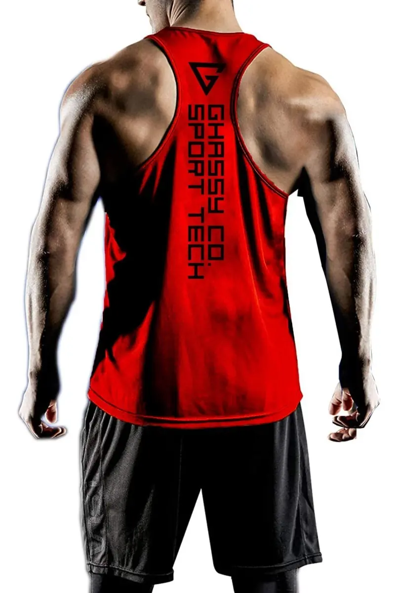 Erkek Dry Fit Y-back Gym Fitness Sporcu Atleti Gym-101-KIRMIZI