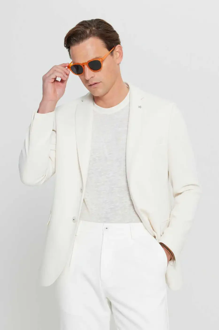 Men Ecru 360 All Ways Stretch Cotton Flexible Slim