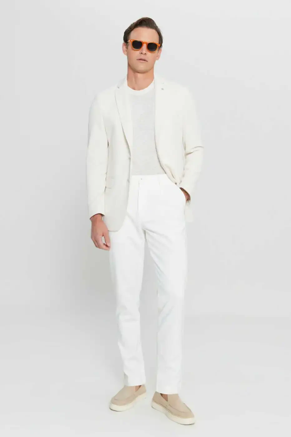 men's trousers, ecru trousers, slim fit trousers, cotton trousers, stretch trousers, 360 degree stretch, comfortable trousers, modern man, casual wear, men's clothing