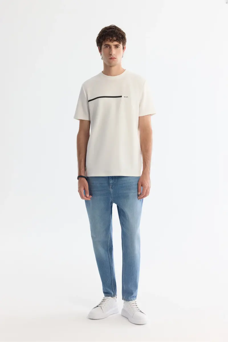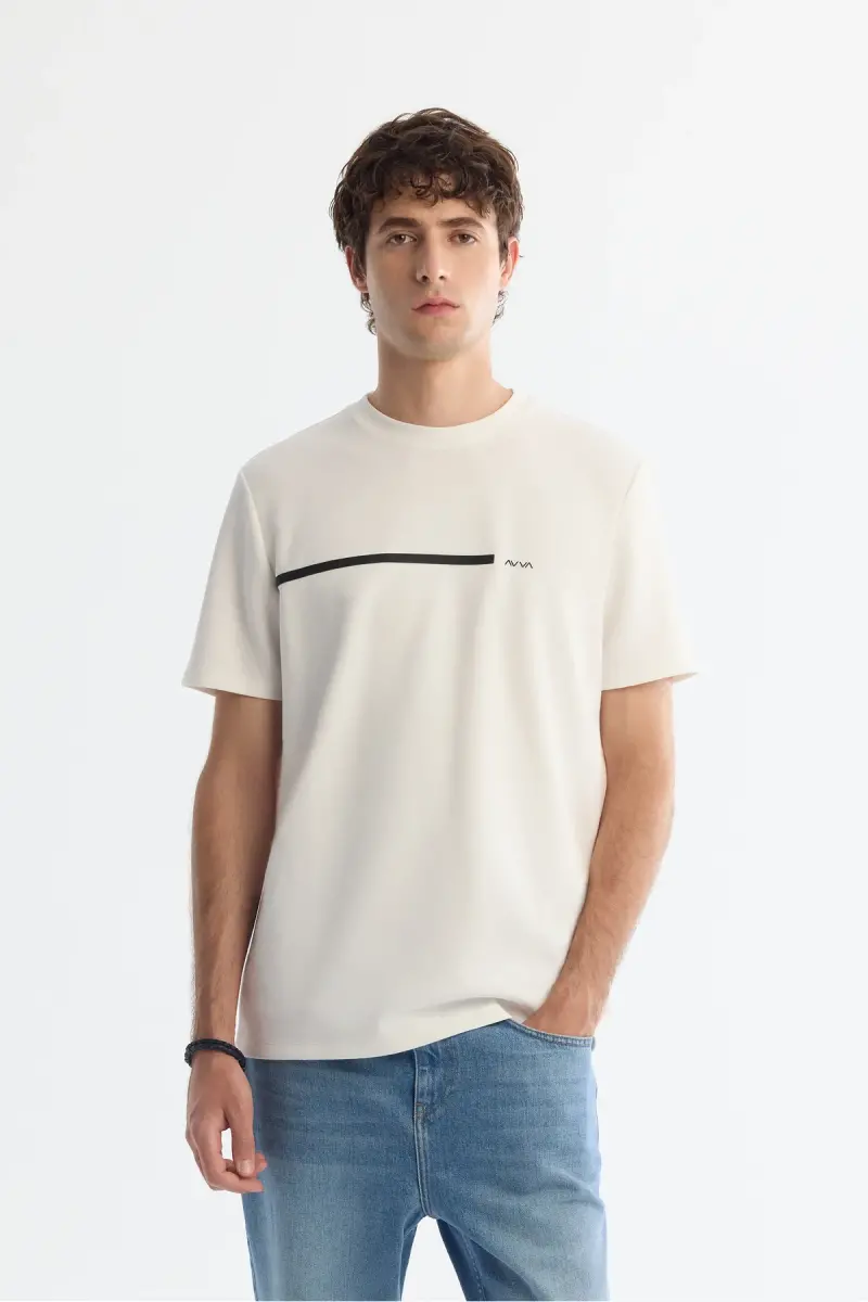 Erkek Ekru Bisiklet Yaka Elastan İnterlok Regular Fit T-Shirt A42Y1003-Ekru