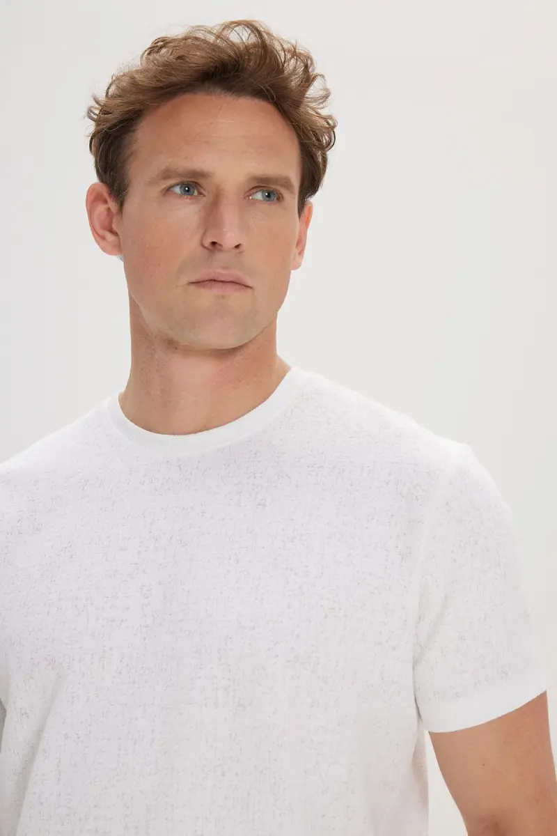 Erkek Ekru Slim Fit Dar Kesim Pamuklu Bisiklet Yaka Tişört-Ekru