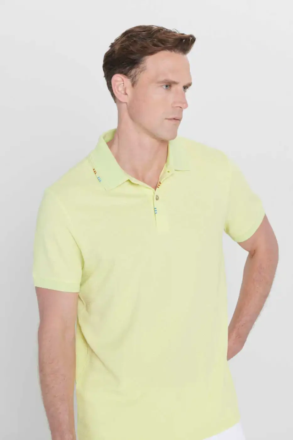 Nafaqat zamonaviy, balki qulaylikni ham qadrlaydigan zamonaviy erkaklar uchun yaratilgan Erkaklar Yerfındığı Yashil Slim Fit Tor Kesim Polo Yaka Bosma Paxta Futbolkasi sizning shkafingizning ajralmas qismiga aylanadi! Altınyıldız Classics sifati bilan ishlab chiqarilgan ushbu futbolka sizga ham kundalik hayotda, ham maxsus kunlarda zamonaviy ko'rinishga ega bo'lishingizga imkon beradi. Yerfındığı yashil rangi trendlarga mos keladi va har qanday kombinatsiya bilan uyg'unlashadi. Slim fit tor kesimi tanangizning chiziqlarini mukammal darajada ta'kidlaydi, paxta matosi esa kun bo'yi qulaylik va nafas olish imkonini beradi. Polo yoqasi detali klassik va zamonaviy teginishni qo'shadi, bosma dizayni esa sizning uslubingizni aks ettiradi. Trikotaj mato tuzilishi harakat erkinligini cheklamaydi va moslashuvchan foydalanishni ta'minlaydi. Yoz oylarida sizni salqin va qulay his qilishingizni ta'minlaydigan yelkali yeng dizayni futbolkaning nafisligini to'ldiradi. Bardoshli tuzilishi va oson tozalanishi tufayli uzoq vaqt davomida asl holatini saqlab qoladi. Ushbu futbolka ham nafislikni, ham qulaylikni qadrlaydigan erkaklar uchun ideal tanlovdir. Har qanday shimlar, shortilar yoki poyabzallar bilan osongina mos keladi va har qanday muhitda zamonaviy ko'rinishga ega bo'lishingizga imkon beradi. Ushbu imkoniyatni boy bermang va shkafingizga nafislik qo'shing!