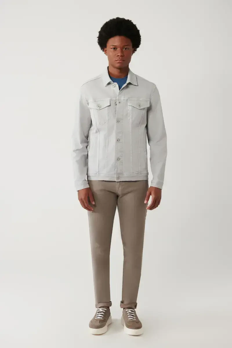 The Men's Grey Classic Collar Garment Dyed Comfort Fit Pocket Denim Jacket is the perfect choice to complete your everyday style, combining style and comfort. The unique grey color achieved with Garment Dyed technology, along with its texture, offers you a timeless look. The classic collar design adapts to every style, while the comfort fit cut offers a comfortable wearing experience. The pockets on the jacket allow you to carry your daily needs with you.