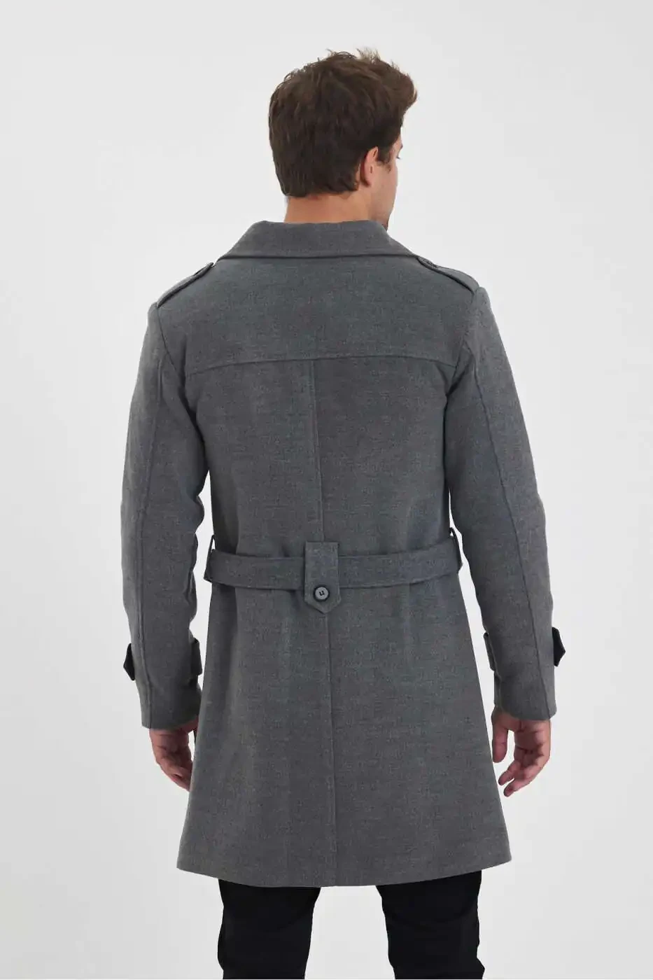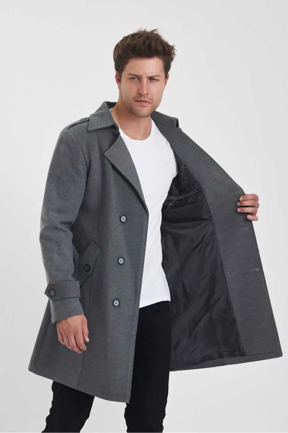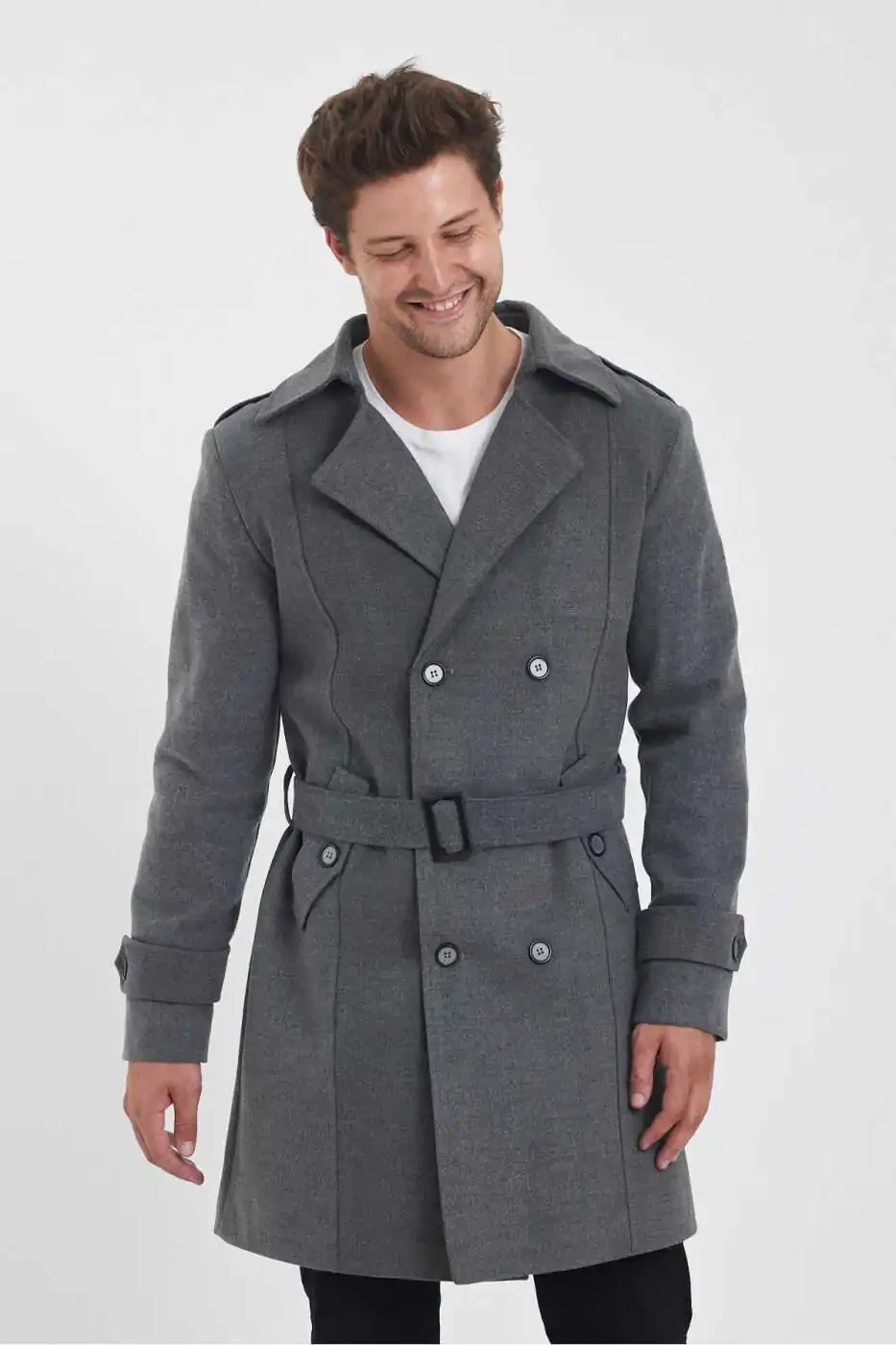 Combining style and comfort, the men's grey double-breasted long slim fit wool coat will keep you warm on cold winter days while complementing your style. Made from high-quality wool fabric, the coat offers durable and long-lasting use. The double-breasted collar design adds a touch of elegance and sophistication, while the long and slim fit perfectly complements your body shape. The coat's grey color allows it to be easily paired with any outfit, creating a stylish look. This coat, which you can comfortably wear both in everyday life and on special occasions, will become an indispensable part of your wardrobe.