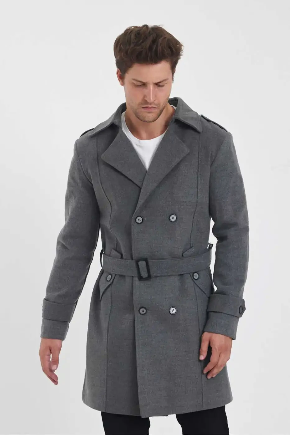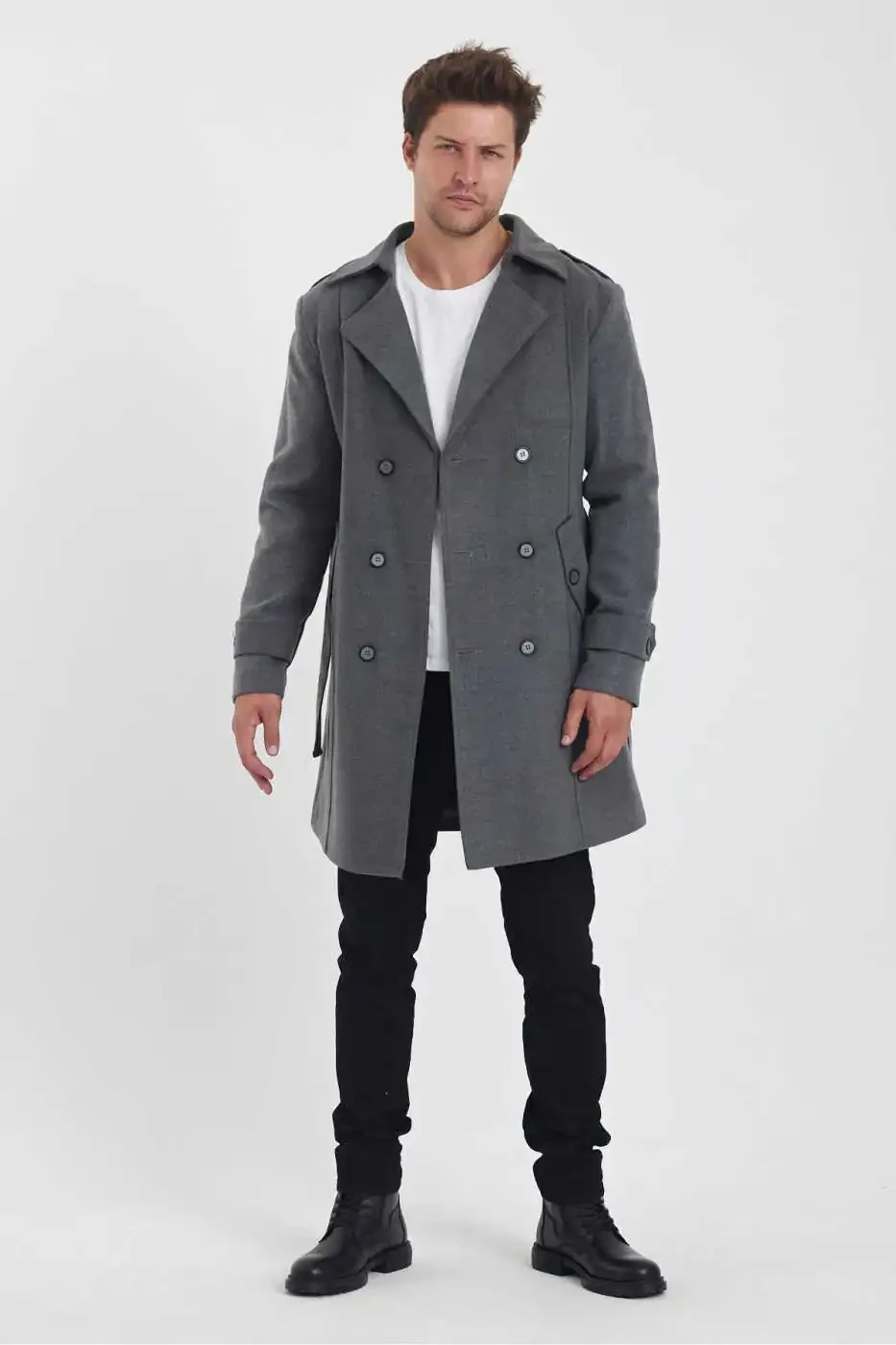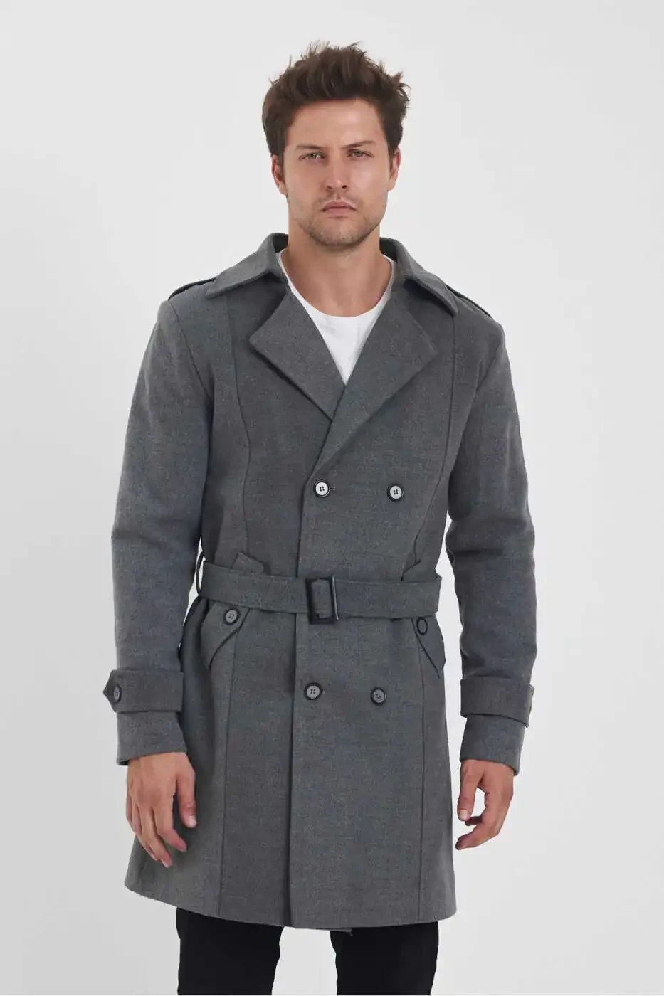 Combining style and comfort, the men's grey double-breasted long slim fit wool coat will keep you warm on cold winter days while complementing your style. Made from high-quality wool fabric, the coat offers durable and long-lasting use. The double-breasted collar design adds a touch of elegance and sophistication, while the long and slim fit perfectly complements your body shape. The coat's grey color allows it to be easily paired with any outfit, creating a stylish look. This coat, which you can comfortably wear both in everyday life and on special occasions, will become an indispensable part of your wardrobe.