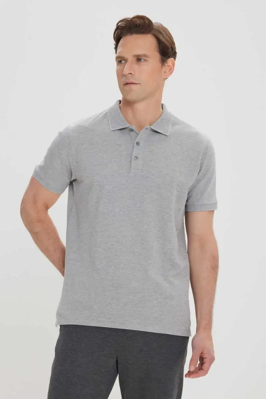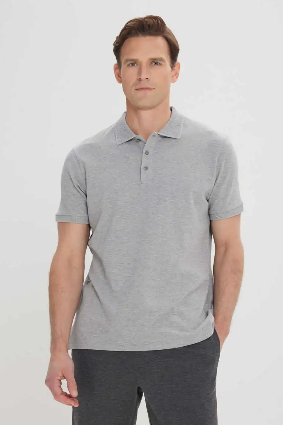 Combine elegance and comfort with the Men's Gray Melange 100% Cotton Non-Iron Pique Polo Collar Slim Fit T-Shirt. Produced with Altınyıldız Classics quality, this t-shirt is a candidate to be an indispensable part of the modern man's wardrobe. As one of the most remarkable designs of the summer collection, this polo collar t-shirt will perfectly complement your casual style. Thanks to its slim fit cut, it fits your body perfectly and offers a stylish look. Gray melange color provides a wide range of use by harmonizing with all kinds of combinations.The unique texture of the pique fabric adds a different atmosphere to the t-shirt, while providing comfortable use throughout the day. Thanks to its cotton structure, it allows your skin to breathe and prevents sweating. Thanks to its non-iron feature, it always looks ironed, so you do not have to constantly fix your clothes during the day. The pocketless design preserves the simple and elegant appearance of the t-shirt, while the polo collar detail adds a classic touch.This t-shirt is an ideal choice for both daily use and special occasions. You can easily combine it with jeans, shorts or chino pants. You can complete it with sneakers for a sporty look or with loafers for a more stylish style. AC Basics Slim Fit Polo Collar T-Shirt is a versatile piece that can adapt to the style of every man.Please note that color differences or glares may occur in the visuals due to the light and shadows used in studio shooting. The actual color of the product may vary depending on the settings on your screen. However, the quality and elegance of the t-shirt will be evident in all conditions. Experience both comfort and elegance together with this special design t-shirt. Get ready to be one of the most favorite pieces of your wardrobe.