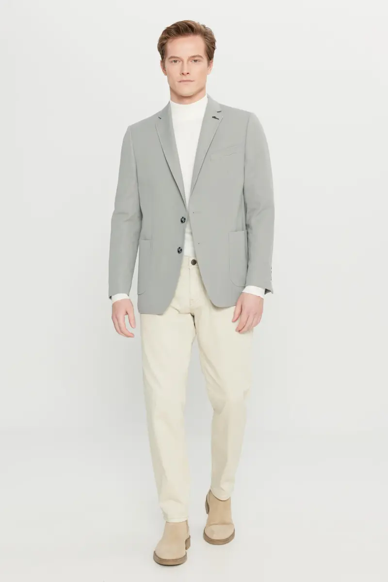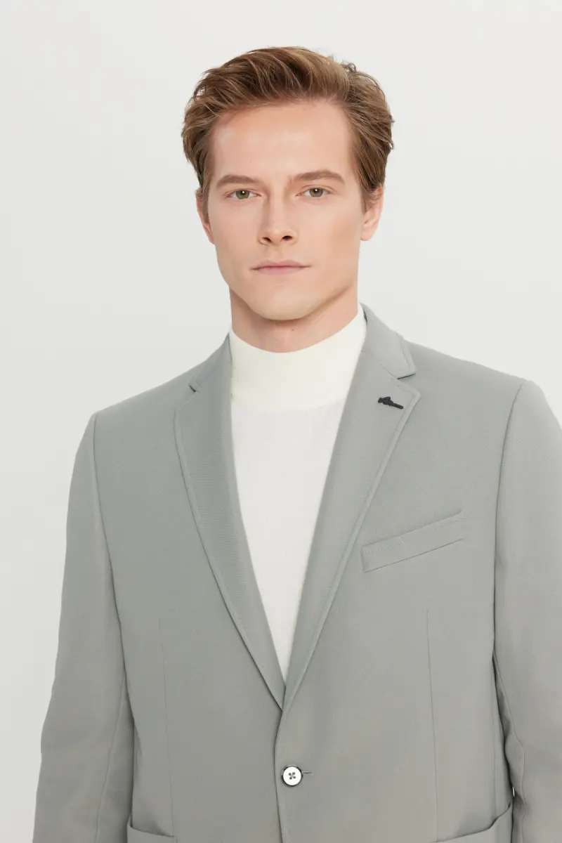 Erkek Gri Slim Fit Dar Kesim Mono Yaka Casual Ceket-Gri