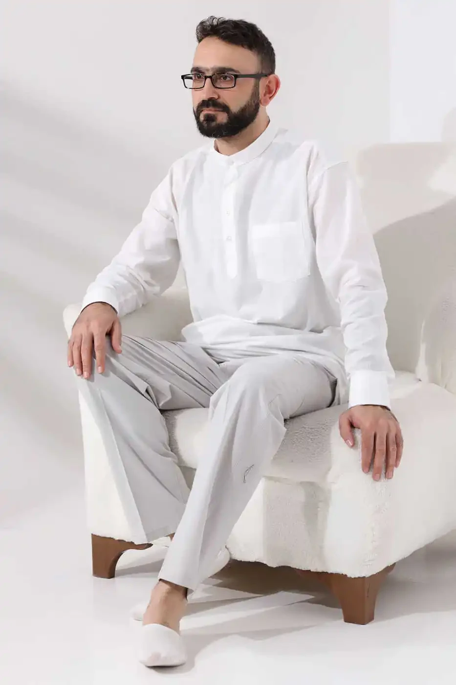 Bu uslubiy shimlar haj va umra kabi maxsus kunlarda ham qulay va uslubiy ko'rinishni ta'minlaydi. Kulrang rangi ularni oson uyg'unlashtiradi va har qanday yuqori kiyim bilan uyg'unlashadi. Qulay kiyish va echish uchun fermuarli strukturasi, kun bo'yi qulay harakatlanishni ta'minlaydi.