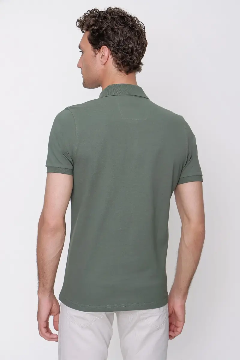 Erkek Haki Basic Düz %100 Pamuk Slim Fit Dar Kesim Kısa Kollu Polo Yaka Tişört