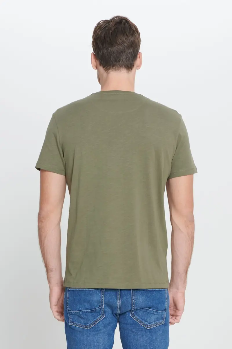 Erkek Haki Slim Fit Dar Kesim %100 Pamuk Bisiklet Yaka Tişört-Haki