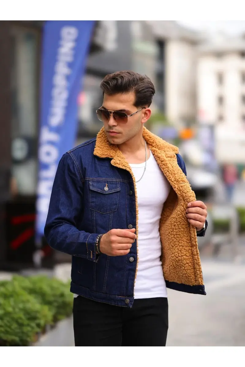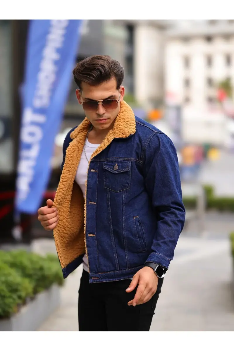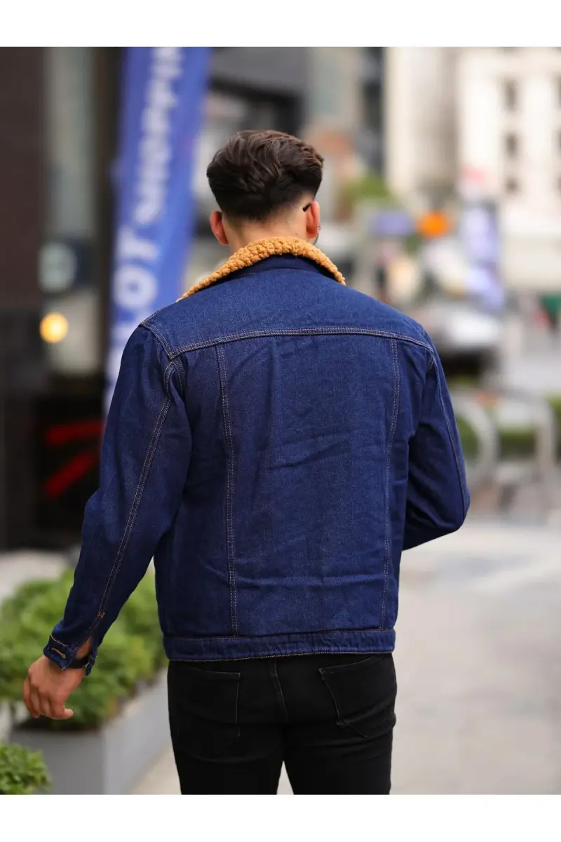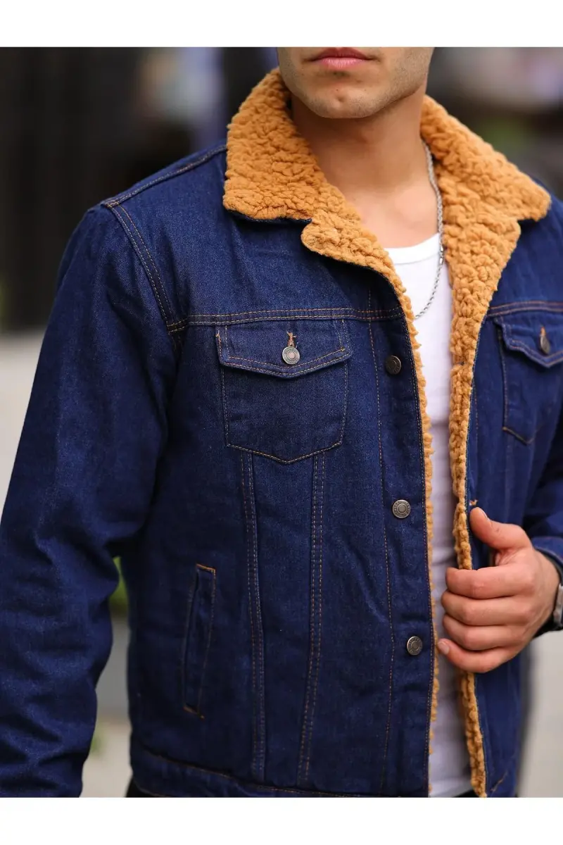 ERKEK İÇİ KÜRKLÜ KOT CEKET-LACİVERT