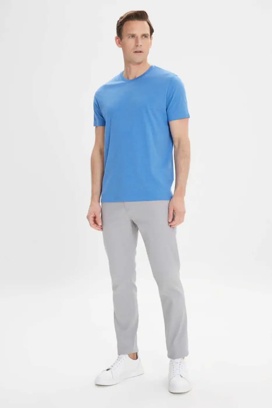 Мужская футболка, футболка индиго, футболка облегающего кроя, хлопковая футболка, футболка с круглым вырезом, футболка узкого кроя, летняя футболка, футболка с короткими рукавами, Altınyıldız Classics, мужская одежда