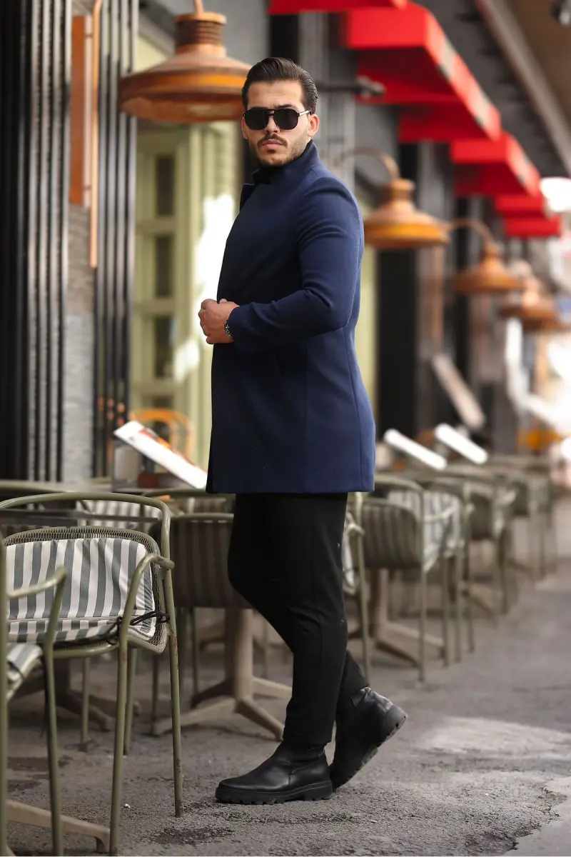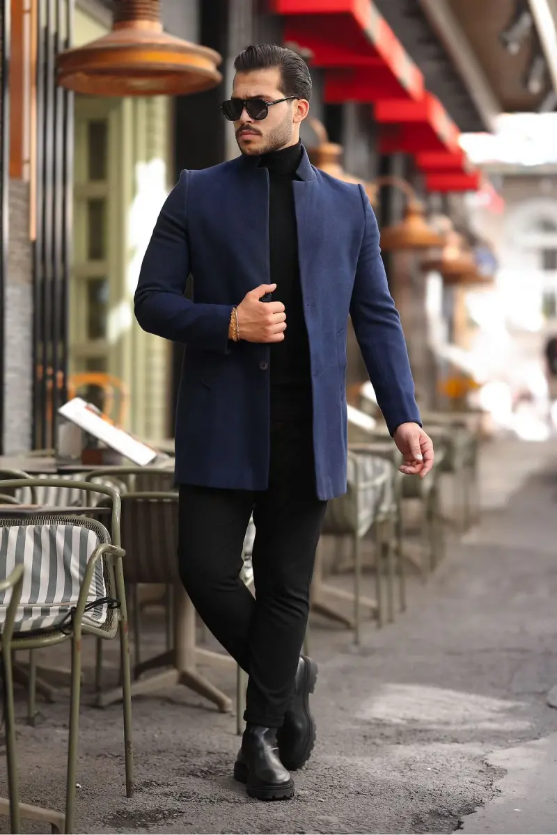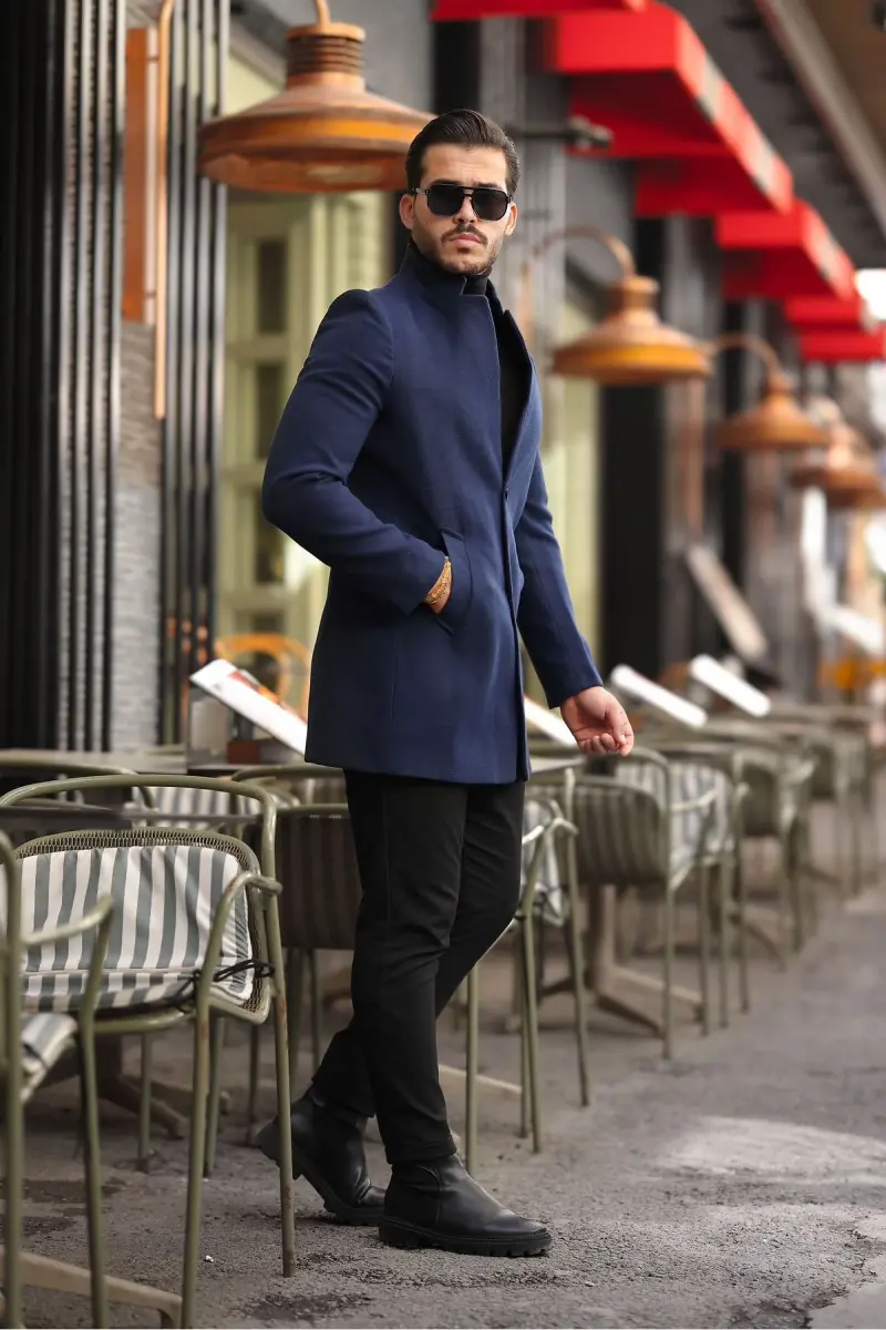 Erkek Kaban Kaşe Slım Fit Dar Kesim Yeni Sezon-Lacivert
