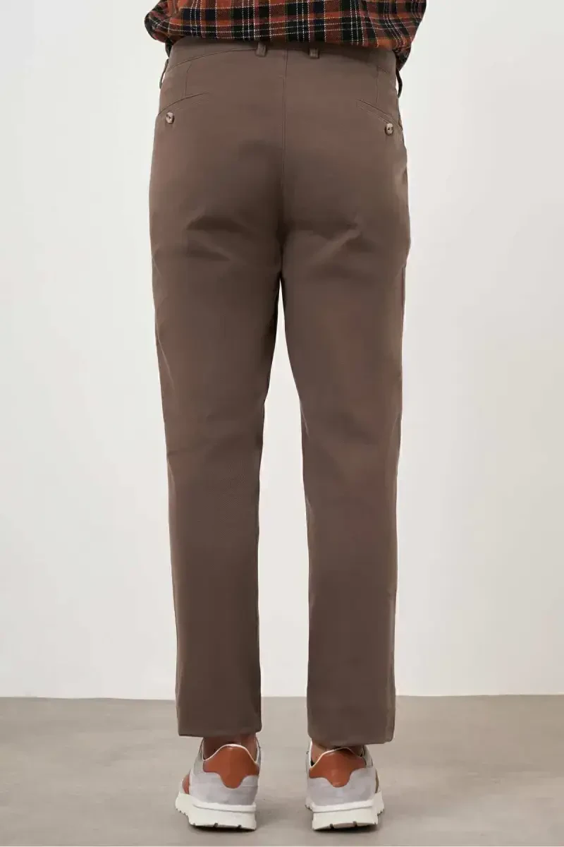 Erkek Kahverengi Pamuk Yan Cep Dynamic Fit Chino Pantolon, çeşitli kombinasyonlara uyum sağlayabilen ve her tarza uyabilecek çok yönlü bir üründür. Tişört, gömlek veya polo ile kombinleyerek şık ve rahat bir günlük görünüm yaratabilirsiniz. Özellikle yaz aylarında tercih edilen bu pantolon, açık hava etkinlikleri ve sosyal ortamlar için de idealdir.
