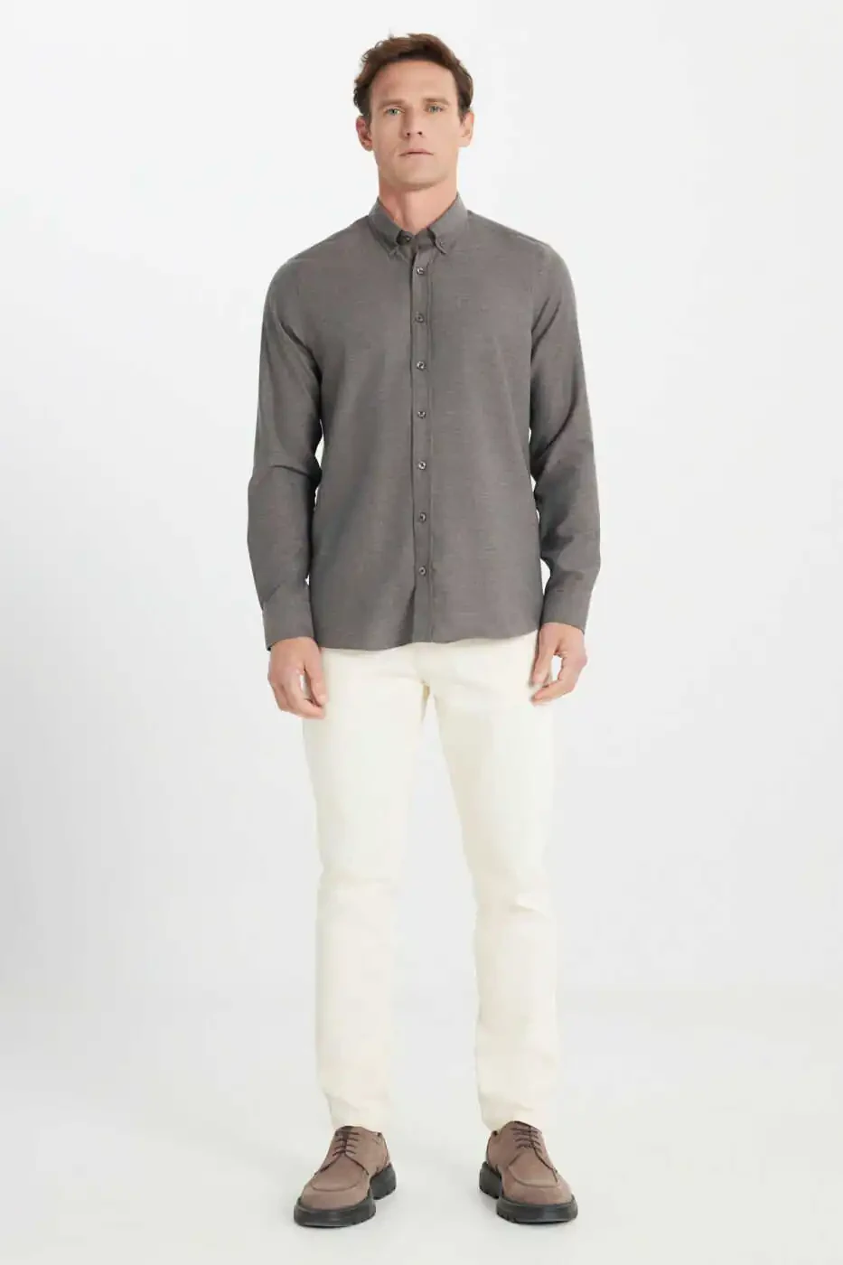 Experience elegance and comfort together with the Men's Brown Cotton Flannel Slim Fit Narrow Cut Button-Down Collar Shirt. This shirt, carefully designed by UGStore, will be indispensable for the winter months. The slim fit cut fits your body perfectly, offering a modern look, while the cotton flannel fabric provides all-day comfort. With its button-down collar detail and long-sleeved design, you can easily use it in both classic and sporty combinations. The pocketless design supports the simple and stylish stance of the shirt. The brown color adapts to all styles and is a candidate to be the joker piece of your wardrobe. Produced with Altınyıldız Classics quality, this shirt will be with you for many years with its durability and elegance. It offers practical use thanks to its machine washability. You can also save time with its low-temperature ironing feature. This shirt, which prioritizes your elegance and comfort, will be the most special piece of your winter collection. The shirt is made of a blend of 49% cotton and 51% polyester, which combines both the natural texture of cotton and the durability of polyester. Thanks to this, the shirt is long-lasting and easy to care for. Thanks to the warming feature of the flannel fabric, you can easily prefer it in cold weather. This slim-fitting shirt creates a modern and stylish silhouette that fits your body. This shirt, which you can prefer both for daily use and for special occasions, will be an indispensable part of your wardrobe. The product size is 50. The model's measurements are height: 1.89cm, weight: 80kg. The product code is ACE202510303KHV. This shirt, offered with UGStore assurance, is an ideal choice for men who seek both elegance and comfort. Remember, being stylish is not only about choosing clothes but also about paying attention to details. This shirt will take your style one step further with its high-quality fabric and stylish design. Don't miss this shirt to stay warm and stylish in the winter months!