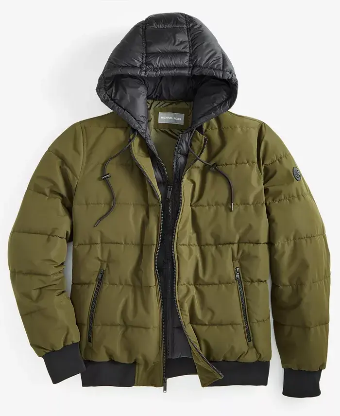 Michael Kors Men's Hooded Puffer Bomber Jacket-Olive, ithal bir üründür ve yüksek kaliteli malzemelerden üretilmiştir. Uzun ömürlü kullanım için etiket üzerindeki yıkama talimatlarına uymanız önerilir.
