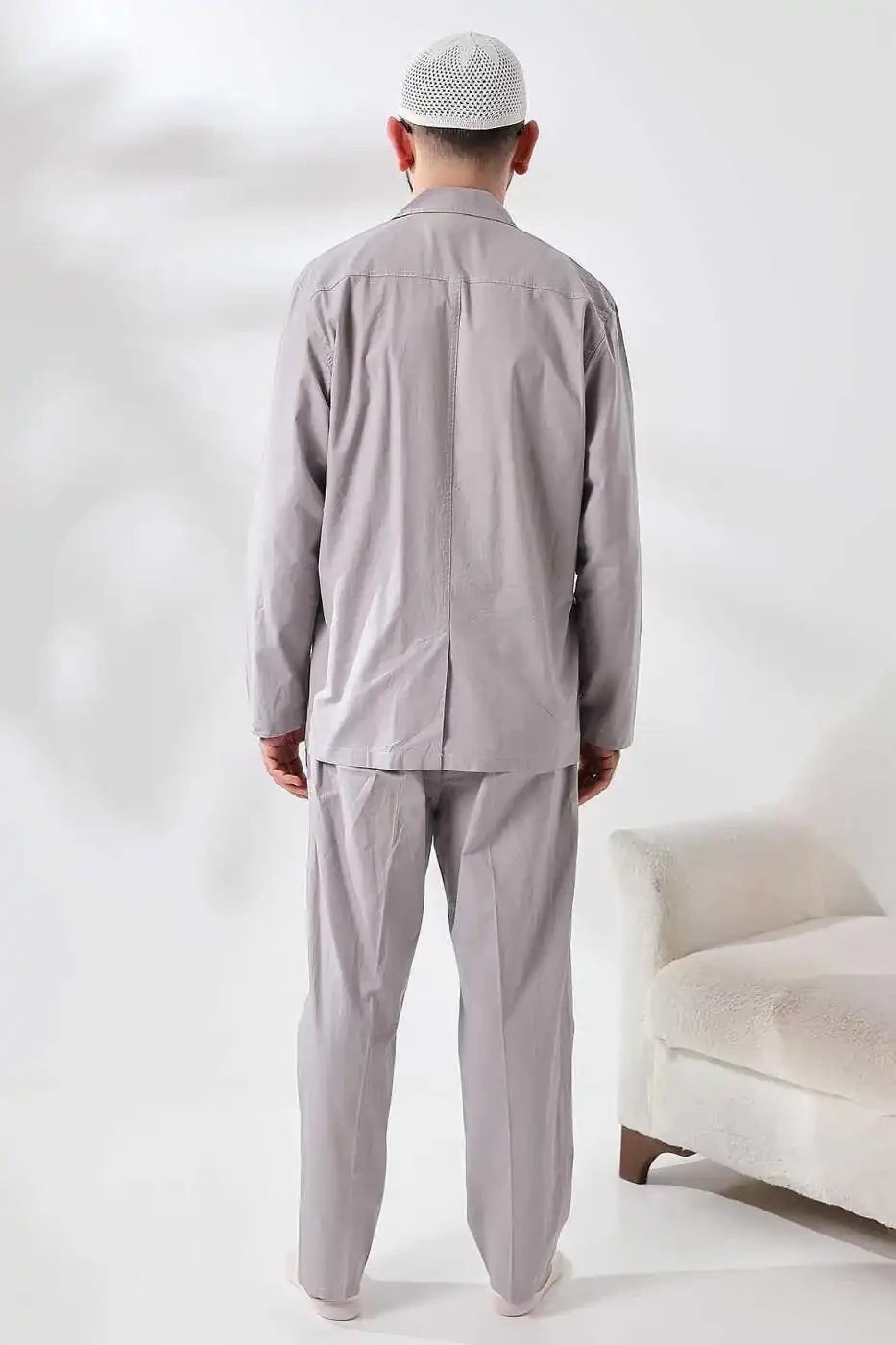 Этот двухкомпонентный костюм полностью выполнен из льняной ткани, что обеспечивает как стиль, так и комфорт. Это отличный выбор для удобного и изысканного образа, будь то паломничество в хадж или умра или просто прогулка по городу.