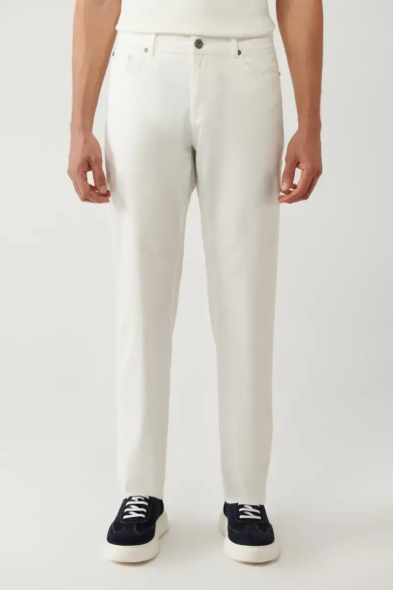 Сочетая стиль и комфорт, брюки Perge Slim Fit станут незаменимой частью вашего гардероба. Эти брюки, которые подойдут к любому сочетанию благодаря своему белому оттенку, предлагают современный вид с классической талией и армированным дизайном. Их смесовая тканевая структура обеспечивает воздухопроницаемость и комфорт в использовании. Дизайн с 5 карманами добавляет практичности и делает их подходящими для повседневного использования. Брюки Perge Slim Fit обеспечат вам стильный и комфортный вид во все времена, от деловых встреч до повседневной активности.