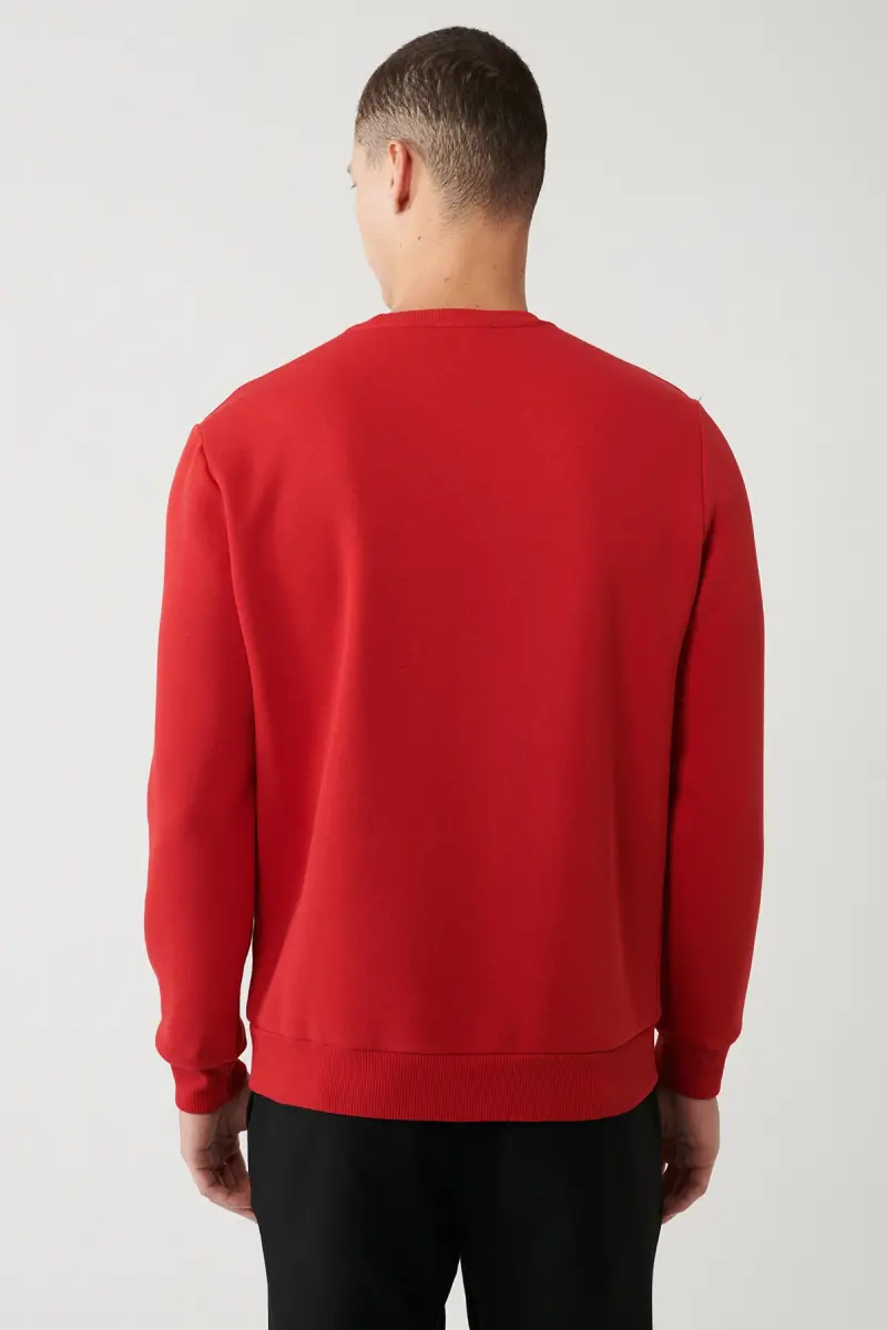 Erkek Kırmızı Şardonlu Kumaş Bisiklet Yaka Basic Sweatshirt E001017-Kırmızı