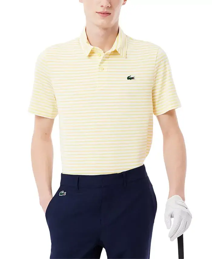 Lacoste polo tişört, erkek polo, çizgili polo, performans polo, golf tişörtü, spor tişört, kısa kollu tişört, UV korumalı tişört, ultra dry, beyaz sarı polo