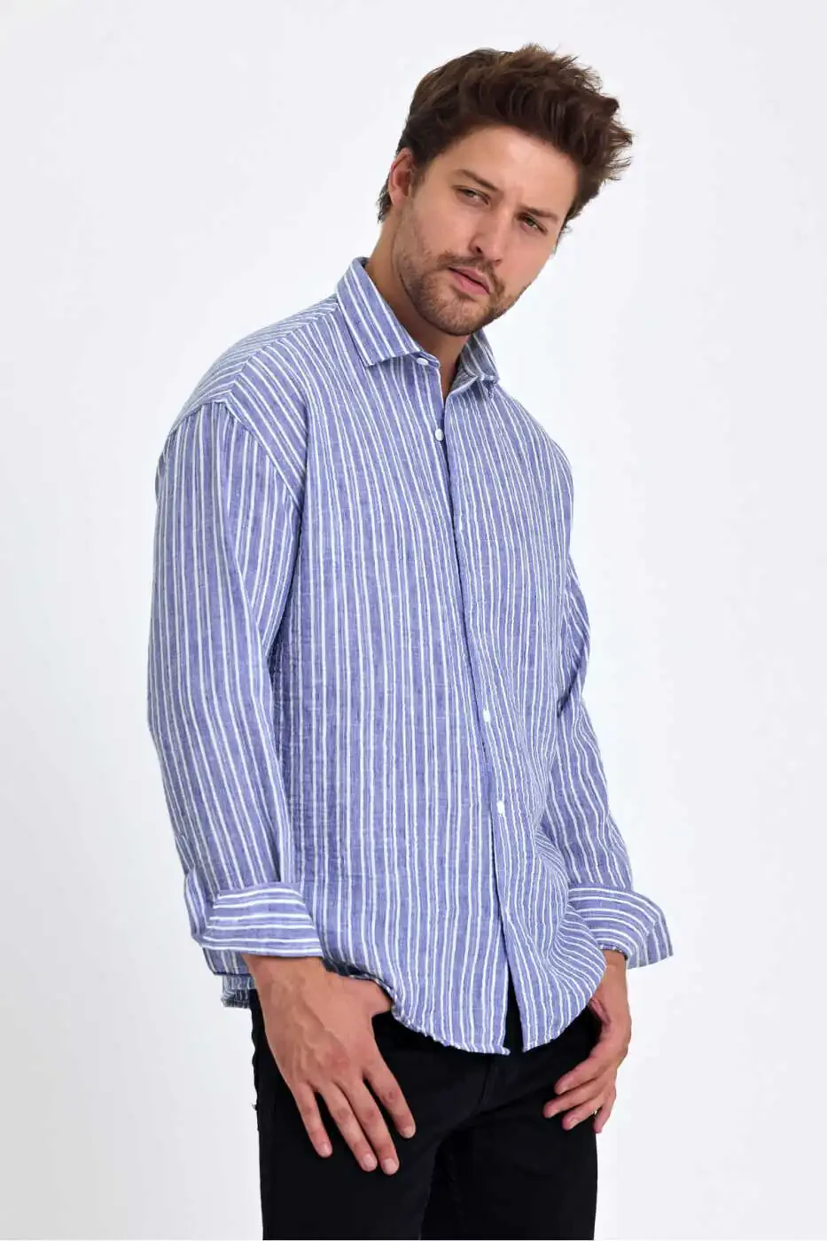 Stil va qulaylikni birlashtirgan ushbu erkaklar uchun klassik kesilgan ko'ylak, issiq havoda salqin turishingiz uchun 100% paxta zig'ir to'qimasidan tayyorlangan. Oddiy kesim dizayni barcha tana turlariga mos keladi va uzun yenglari zamonaviy ko'rinish beradi. Yenglarini katlab olish xususiyati kundalik foydalanish uchun amaliy echimni taqdim etadi, chiziqli naqsh esa sizning uslubingizga zamonaviylik qo'shadi.