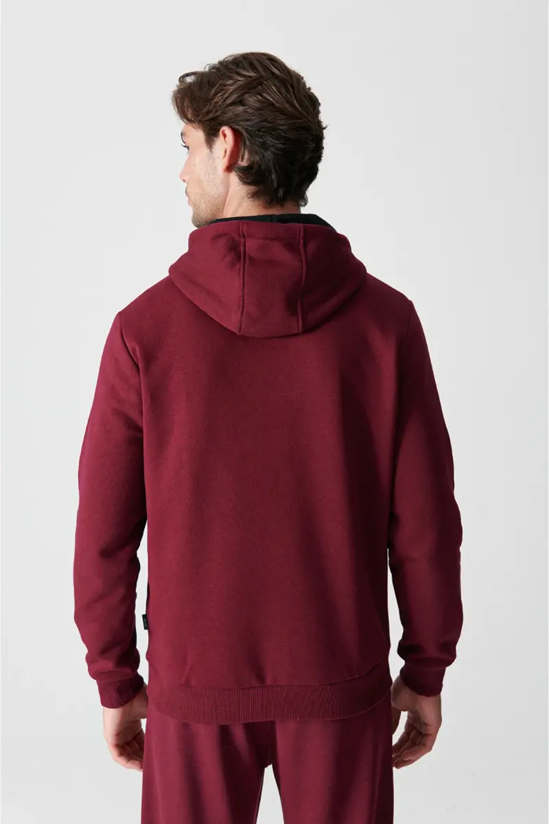 Erkek Koyu Bordo Kapüşonlu 3 İplik Şardonlu Pamuklu Sweatshirt E001018-Koyu Bordo
