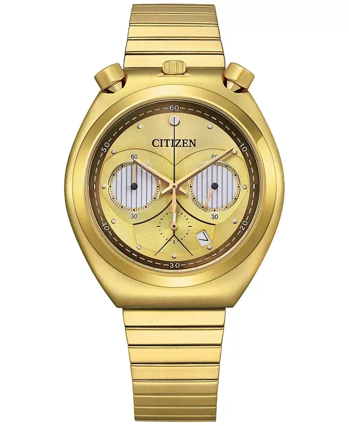 Star Wars evreninin ikonik karakterlerinden C-3PO'nun zarafeti ve gücünü bileğinizde taşıyın! Men's Chronograph Star Wars C-3PO Gold-Tone Stainless Steel Bracelet Watch, hem Star Wars tutkunları hem de şıklığına önem veren erkekler için tasarlanmış özel bir saattir. Altın tonlarındaki paslanmaz çelik bileziği ve 38 mm'lik kasasıyla bu saat, dikkatleri üzerinize çekecek sofistike bir görünüm sunar. Saatin kadranı, C-3PO'nun karakteristik altın rengiyle bezenmiştir ve Star Wars detaylarıyla zenginleştirilmiştir. Kronograf özelliği, zamanı hassas bir şekilde ölçmenize olanak tanırken,Quartz mekanizması sayesinde her zaman dakik olursunuz. Günlük kullanımın yanı sıra özel günlerde de stilinizi tamamlayacak bu saat, aynı zamanda mükemmel bir hediye seçeneğidir. 50 metreye kadar su geçirmezlik özelliği ile de günlük kullanımda rahatlık sağlar. Men's Chronograph Star Wars C-3PO Gold-Tone Stainless Steel Bracelet Watch, sadece bir saat değil, aynı zamanda bir ifade biçimidir. Star Wars sevginizi zarif ve şık bir şekilde göstermenin en iyi yoludur. Bu özel saat ile hem zamanı takip edin hem de tarzınızı konuşturun. Koleksiyonunuzun en değerli parçalarından biri olmaya aday bu saati kaçırmayın! Bu saat, Star Wars hayranlığını ve modern tasarımı bir araya getiren eşsiz bir aksesuardır. İster günlük hayatta ister özel etkinliklerde kullanın, her zaman şıklığınızı ve farkınızı ortaya koyacaktır. C-3PO'nun ikonik detayları, saat tasarımına ustaca entegre edilmiş olup, hem dikkat çekici hem de zarif bir görünüm sunar. Altın tonlarındaki paslanmaz çelik bilezik, konforlu bir kullanım sağlarken, saatin dayanıklılığını da artırır. Bu saat, sadece zamanı göstermekle kalmaz, aynı zamanda bir yaşam tarzını yansıtır.