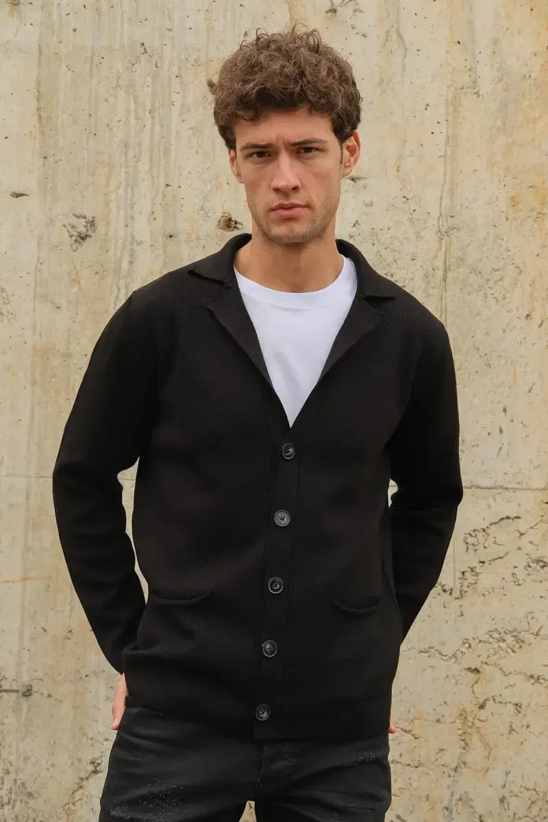Men's Double-Breasted Buttoned Pocket Knit Cardigan Black 23w220-Black is a special design that combines elegance and comfort. Offered with the assurance of the CHUBA brand, this cardigan is a candidate to be one of the indispensable pieces of your wardrobe. Being made of 100% acrylic material gives the cardigan a soft touch and offers long-lasting use. Thanks to the durability of the acrylic material, you can use your cardigan like the first day for many years. The woven fabric type ensures that the cardigan has a breathable structure, offering a comfortable experience all day long. It minimizes the problem of sweating and allows your skin to breathe comfortably. The double-breasted collar design adds a modern and sophisticated touch to the cardigan. This special collar cut helps you create a stylish look and offers comfortable use. Thanks to its straight cut, the cardigan is in perfect harmony with all kinds of combinations. You can combine it with jeans and a t-shirt for a casual style, or with a shirt and trousers for a more stylish look. The long-sleeved design provides ideal protection in cool weather or seasonal transitions. The length of the sleeves helps protect you from the cold while highlighting your style. The practical button closure allows you to easily put on and take off the cardigan. The buttons add an elegant touch to the design of the cardigan and offer the opportunity to create different styles. You can either close the buttons completely and achieve a classic look, or leave them open and achieve a more relaxed and sporty style. This cardigan is a must-have piece in every man's wardrobe with its versatile usage features. You can order a maximum of 10 pieces via Trendyol. Thanks to the free return option within 15 days, you can try the product with peace of mind and return it if you are not satisfied. Reflect your style with the Men's Double-Breasted Buttoned Pocket Knit Cardigan Black 23w220-Black and attract attention in any environment.