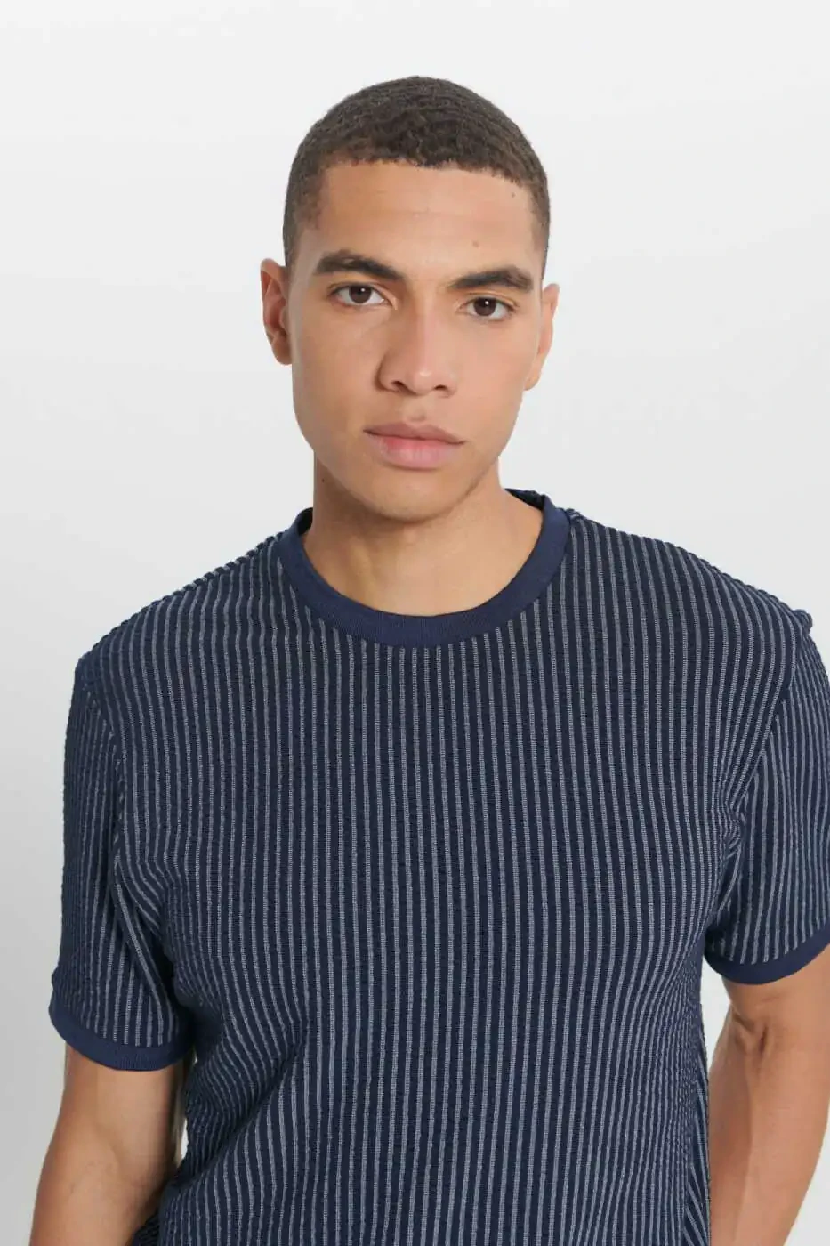 Erkek Lacivert Comfort Fit Rahat Kesim Pamuklu Çizgili Bisiklet Yaka Tişört ile stilinizi ve konforunuzu bir araya getirin. Altınyıldız Classics kalitesiyle üretilen bu tişört, yaz aylarının vazgeçilmezi olacak. Şık çizgili deseni ve rahat kesimi sayesinde hem günlük kullanımda hem de özel anlarda tercih edebileceğiniz çok yönlü bir parça. %76 pamuk, %22 polyester ve %2 elastan karışımı kumaşı, gün boyu nefes alabilirlik ve hareket özgürlüğü sunar. Bisiklet yaka tasarımı, modern ve sportif bir görünüm sağlarken, kısa kollu yapısı sıcak havalarda serin kalmanıza yardımcı olur. Cepsiz tasarımı, tişörtün sade ve şık görünümünü korur. Lacivert rengi, farklı kombinler yapmanıza olanak tanır ve gardırobunuzdaki diğer parçalarla kolayca uyum sağlar. Comfort fit kesimi, vücudunuza tam oturmadan rahat bir kullanım sunar. İster jeanlerle, ister şortlarla kombinleyin, her zaman şık ve rahat hissedeceksiniz. Altınyıldız Classics Comfort Fit Rahat Kesim Pamuklu Çizgili Bisiklet Yaka Tişört, hem stil sahibi erkeklerin hem de konfor arayanların beklentilerini karşılayacak şekilde tasarlanmıştır. Ürünün uzun ömürlü olması için yıkama talimatlarına uymanız önemlidir. Makine yıkama suyu sıcaklığı 30 dereceyi geçmemeli, trikloretilen hariç kuru temizleme kimyasalları kullanılmalı, çamaşır suyu konmamalı, kurutma makinesinde kurutulmamalı ve düşük ısıda ütülenmelidir. Bu sayede tişörtünüzü uzun yıllar boyunca ilk günkü gibi kullanabilirsiniz. Gardırobunuzun vazgeçilmezi olacak bu tişörtü hemen keşfedin ve stilinizi Altınyıldız Classics kalitesiyle tamamlayın. Hem rahat hem de şık olmanın keyfini çıkarın. Bu tişört, sadece bir giysi değil, aynı zamanda tarzınızı yansıtan bir ifadedir. Her detayında özenle çalışılmış olan bu tişört, günlük hayatınızda size eşlik edecek ve her anınızda konforunuzu sağlayacaktır.