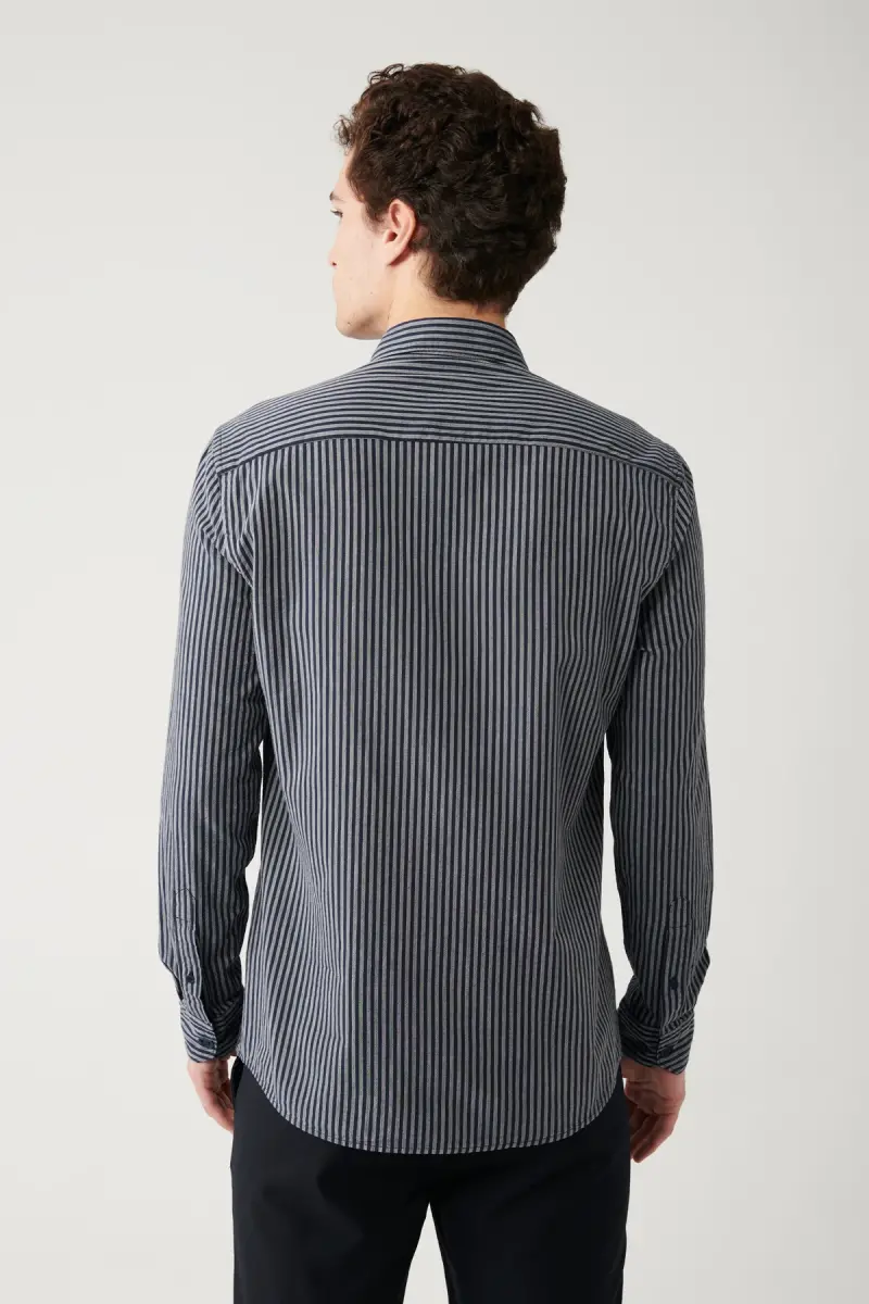 Slim fit kesimi sayesinde vücudunuza kusursuz bir şekilde uyum sağlayacak ve sizi daha fit gösteren Erkek Lacivert Gömlek, iş görüşmelerinizden, akşam yemeklerinize kadar her türlü ortamda şık ve modern bir görünüm sunar.