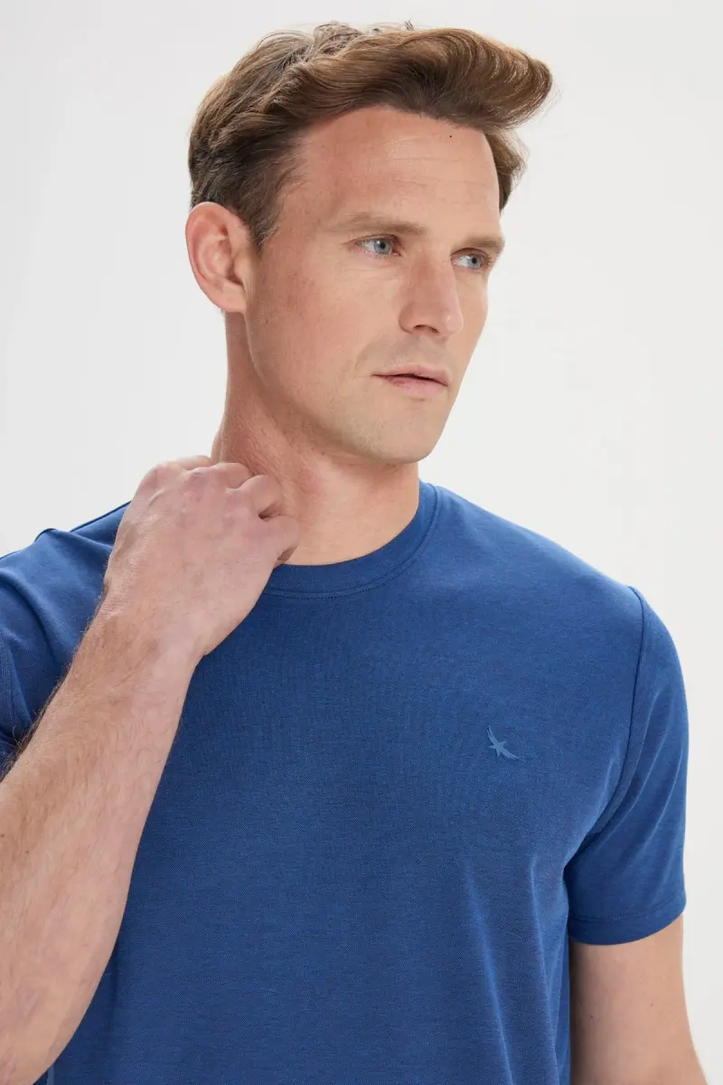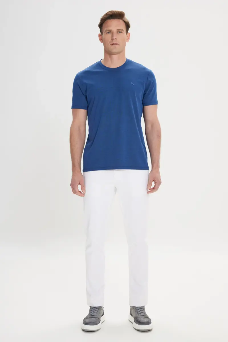 Erkek Lacivert Slim Fit Dar Kesim Bisiklet Yaka Pamuklu Tişört-Lacivert