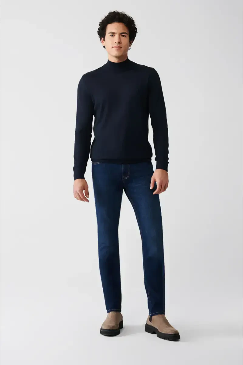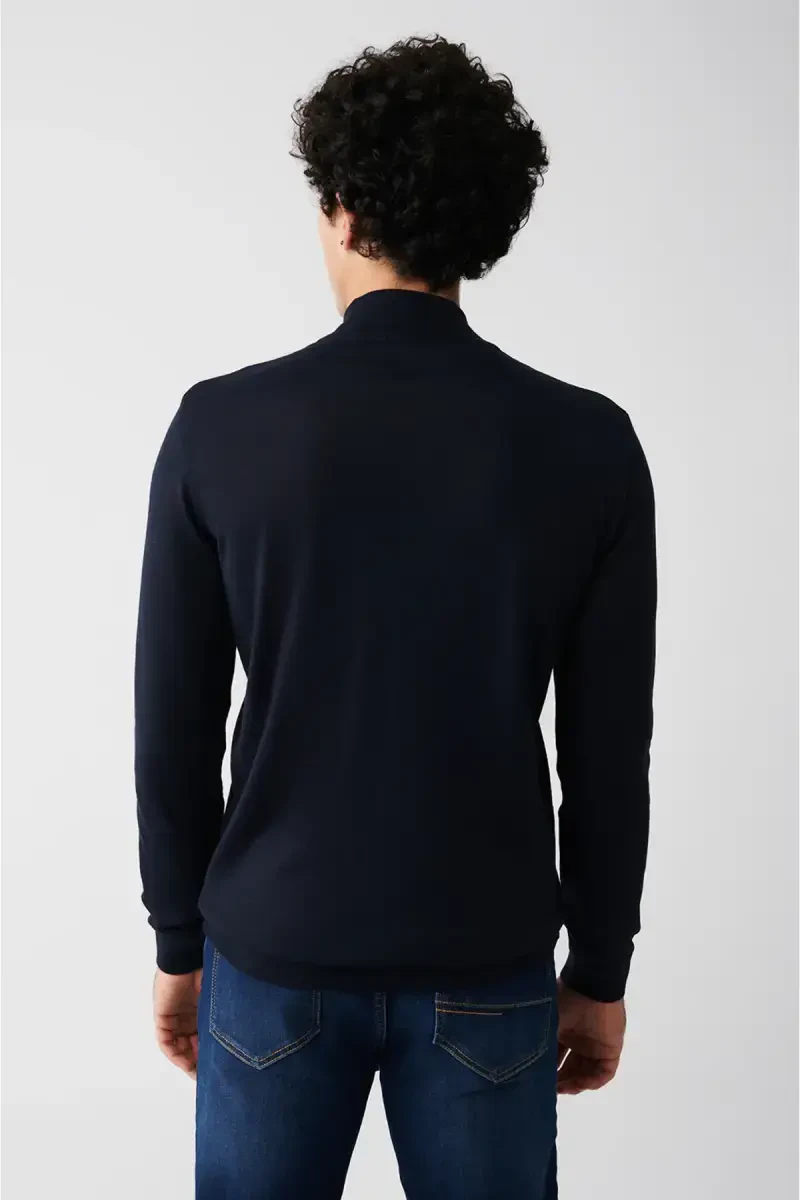 Men's Navy Knit Sweater is the perfect choice to add style to your look and stay warm in the winter cold. Order now and be stylish in cold weather!