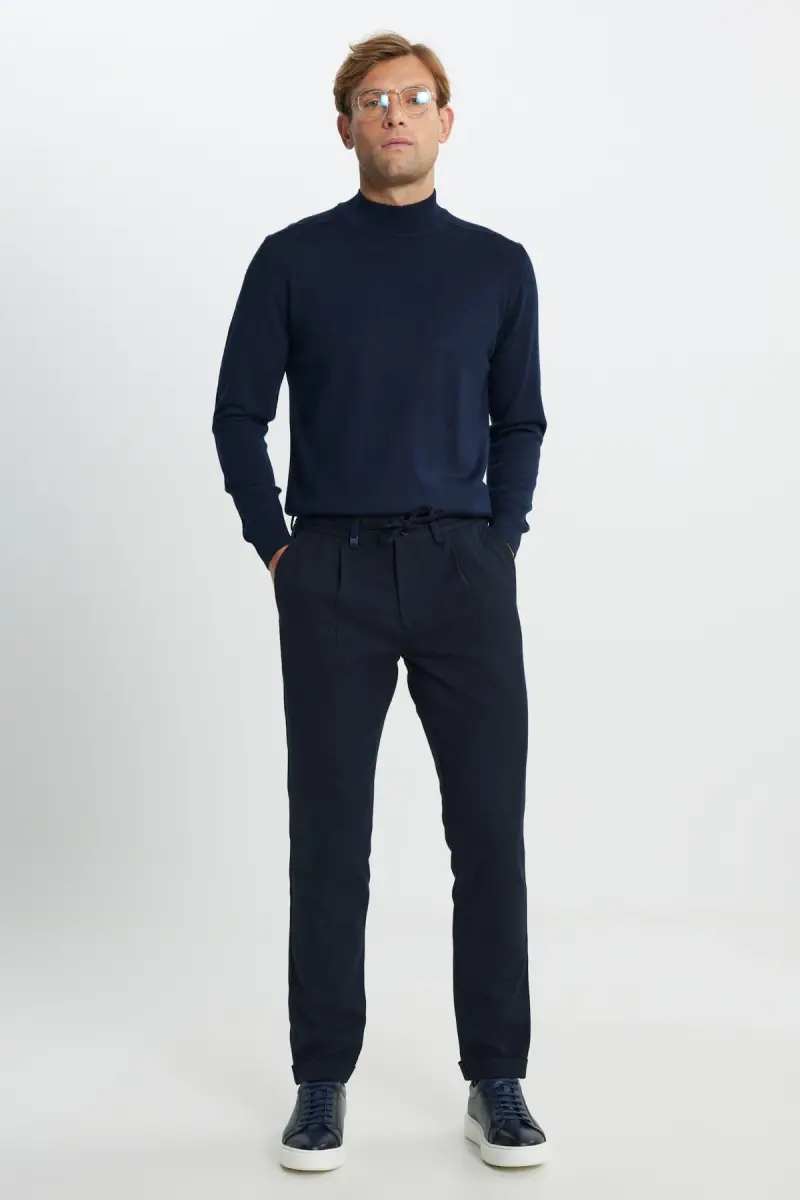 Erkek Lacivert Yünlü Slim Fit Dar Kesim Beli Bağla. %68 Yün %32 Polyester. Kruvaze Model, Uzun Kol.Ürün AçıklamasıErkek Lacivert Yünlü Slim Fit Dar Kesim Beli Bağla, şıklığı ve konforu bir araya getiren özel bir tasarımdır. Modern erkeğin gardırobunda mutlaka bulunması gereken bu parça, hem günlük kullanım hem de özel günler için ideal bir seçenektir. Yüksek kaliteli yün ve polyester karışımı sayesinde soğuk havalarda sıcak tutarken, terletmeyen yapısıyla gün boyu rahatlık sunar. Slim fit kesimi, vücuda oturan dar kesimiyle kusursuz bir siluet yaratır. Beli bağlama detayı, cekete özgün bir stil katarken, vücut hatlarını daha belirgin hale getirir. Kruvaze modeli, klasik ve modern çizgileri birleştirerek zamansız bir görünüm sunar. Uzun kollu tasarımı, soğuk havalarda ekstra koruma sağlarken, şık bir duruş sergilemenize yardımcı olur. Lacivert rengi, her türlü kombinle uyum sağlayarak stilinizi tamamlar. İş toplantılarından akşam yemeklerine kadar her ortamda rahatlıkla kullanabileceğiniz bu ceket, tarzınızı yansıtmanız için mükemmel bir seçenektir. Yünlü dokusu, cekete lüks bir hava katarken, polyester içeriği dayanıklılığı artırır. Bu sayede uzun yıllar boyunca ilk günkü şıklığını korur. Gardırobunuzun vazgeçilmezi olacak bu ceket, hem şıklığı hem de konforu bir arada sunarak beklentilerinizi karşılar. Her erkeğin tarzına uyum sağlayabilecek bu özel tasarım, stilinizi bir adım öteye taşıyacaktır. Klasik gömleklerle, trikolarla veya basic tişörtlerle kombinleyerek farklı tarzlar yaratabilirsiniz. Ayakkabı seçiminde ise klasik deri ayakkabılar veya modern sneaker'lar tercih ederek kombininizi tamamlayabilirsiniz. Erkek Lacivert Yünlü Slim Fit Dar Kesim Beli Bağla ceket, her detayında kaliteyi ve şıklığı barındıran özel bir tasarımdır. Bu ceket ile tarzınızı yansıtın ve her ortamda dikkatleri üzerinize çekin.Ürün Özellikleri* %68 Yün %32 Polyester* Slim Fit Dar Kesim* Kruvaze Model* Uzun Kol* Beli Bağlama DetayıEk BilgilerModelin üzerindeki ürünün bedeni: M. Manken Ölçüleri: Boy: 1.88 cm, Göğüs: 98 cm, Bel: 75 cm, Basen: 99 cm. Ürününüzü uzun ömürlü kullanmak için lütfen etiket üzerindeki yıkama talimatlarına uyunuz.