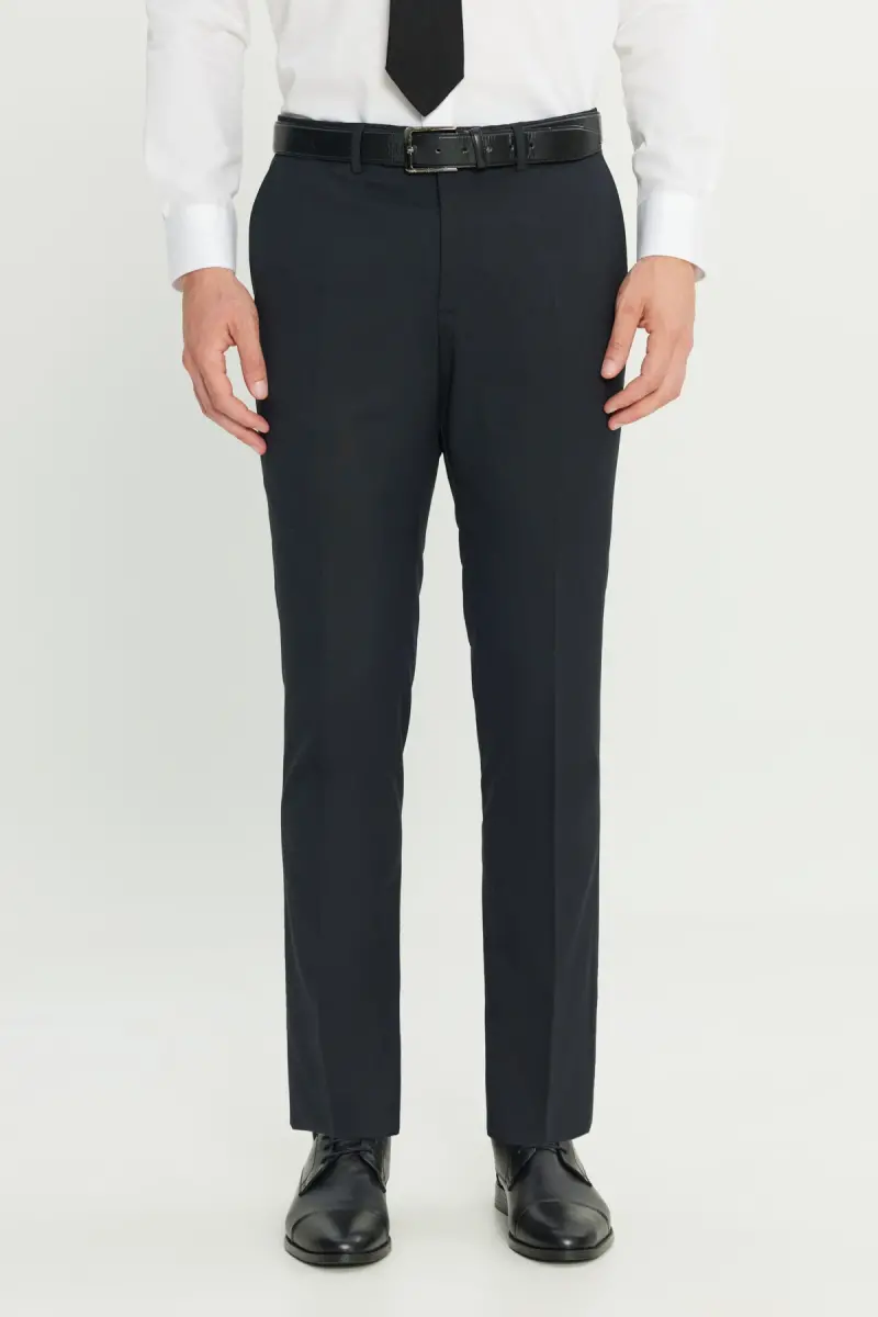 Erkek Lacivert Yünlü Slim Fit Dar Kesim Yan Cep Klasik Pantolon-Lacivert