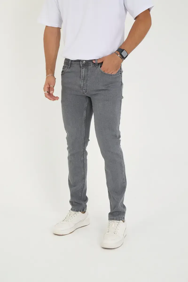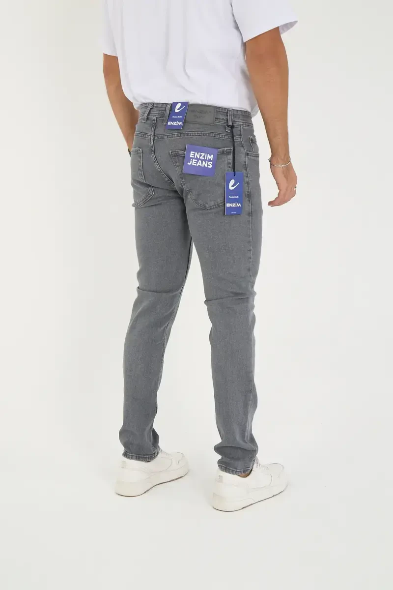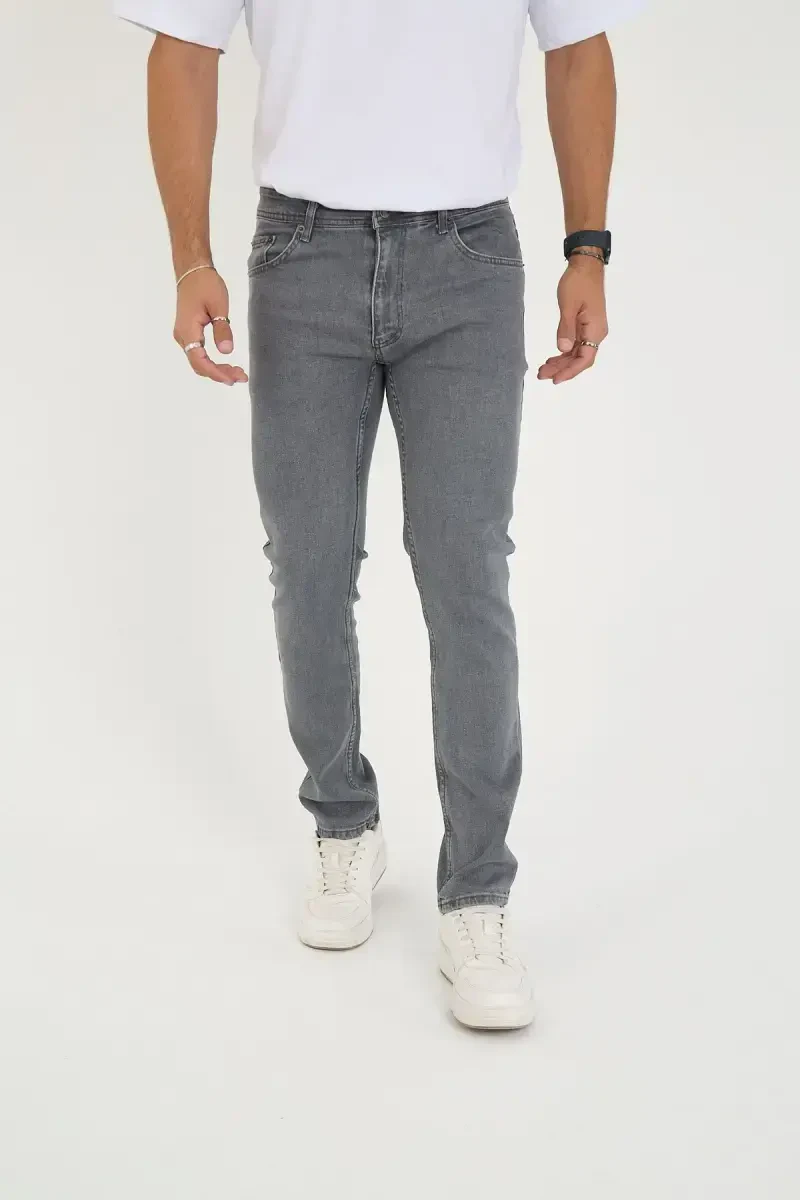 Erkek Likralı Denim Normal Kesim Kot Pantolon-Gri