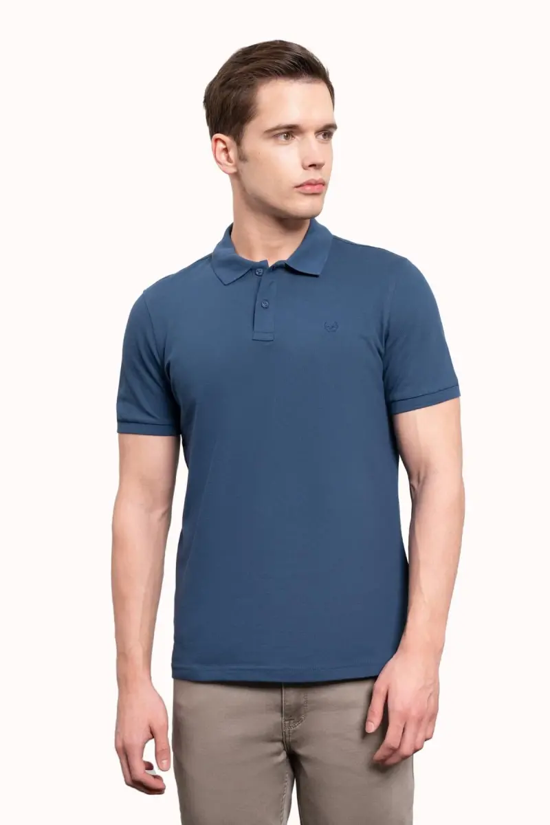 Erkek Marine Basic Düz %100 Pamuk Slim Fit Dar Kesim Kısa Kollu Polo Yaka Tişört