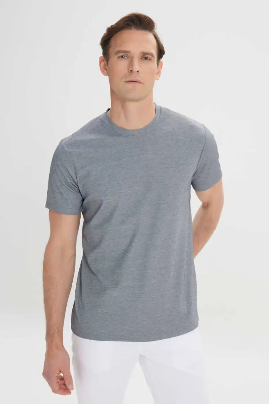 Erkek Mavi Slim Fit Dar Kesim Bisiklet Yaka Pamuklu Tişört, %100 Pamuk, Slim Fit, Bisiklet Yaka, Kısa Kol, Düz Renk