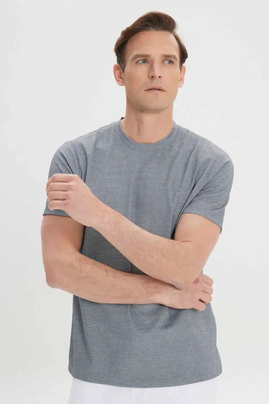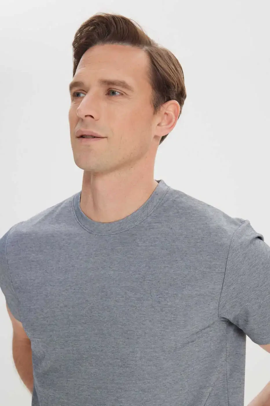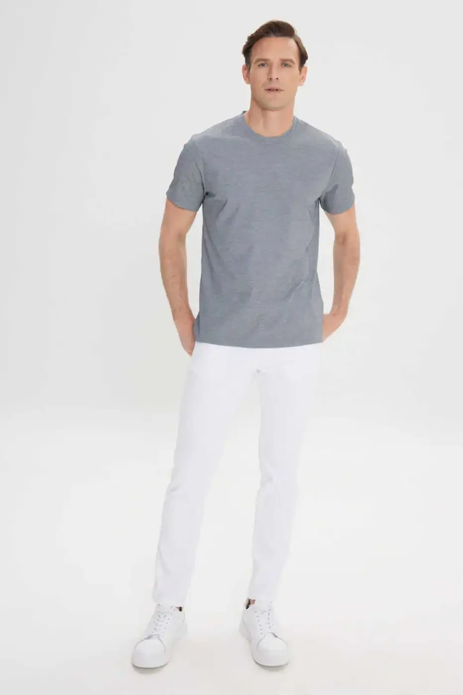 Mavi Slim Fit Bisiklet Yaka Erkek Tişört | Pamuklu, Dar Kesim