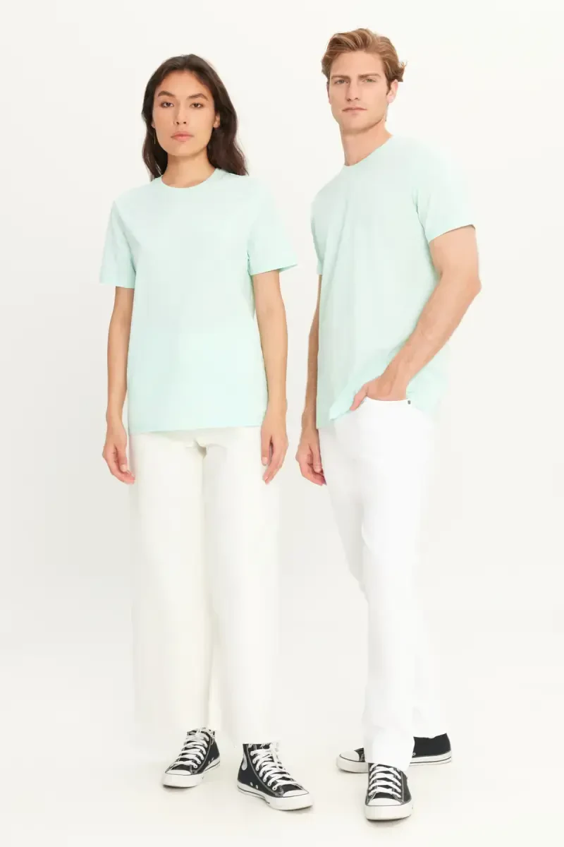 Men's Mint 100% Cotton Slim Fit Narrow Cut Crew Neck Basic T-Shirt is a candidate to be an indispensable part of your wardrobe! Produced with Altınyıldız Classics quality, this t-shirt offers both elegance and comfort together. Ideal for your daily use, this t-shirt provides comfort and breathability all day long thanks to its 100% cotton fabric. Its slim fit cut helps you create a stylish silhouette by fitting your body in a modern and elegant way. The crew neck design adds a sporty and dynamic touch to the t-shirt, while its plain pattern makes it easy to match with any combination. You can reflect your style by combining it with jeans, shorts or linen trousers. This t-shirt is designed for men aged 21-40 and offers a young, dynamic look. The woven fabric structure increases the durability of the t-shirt while offering a comfortable wearing experience. The short-sleeved design keeps you cool and refreshed, especially in summer. Thanks to the easy-care washing instructions, it is ideal for long-term use. This basic t-shirt is not only stylish but also a practical option. It accompanies you in your daily activities without restricting your freedom of movement. Thanks to its timeless and simple style, it always manages to stay on trend. This t-shirt, which should definitely be in your closet, will complement your style and give you confidence in any environment. The mint color offers a vibrant and energetic look, especially in spring and summer. You can easily combine it with other colors in your wardrobe and create different styles. Produced with the quality of Altınyıldız Classics, this t-shirt promises long-lasting use and superior comfort.
