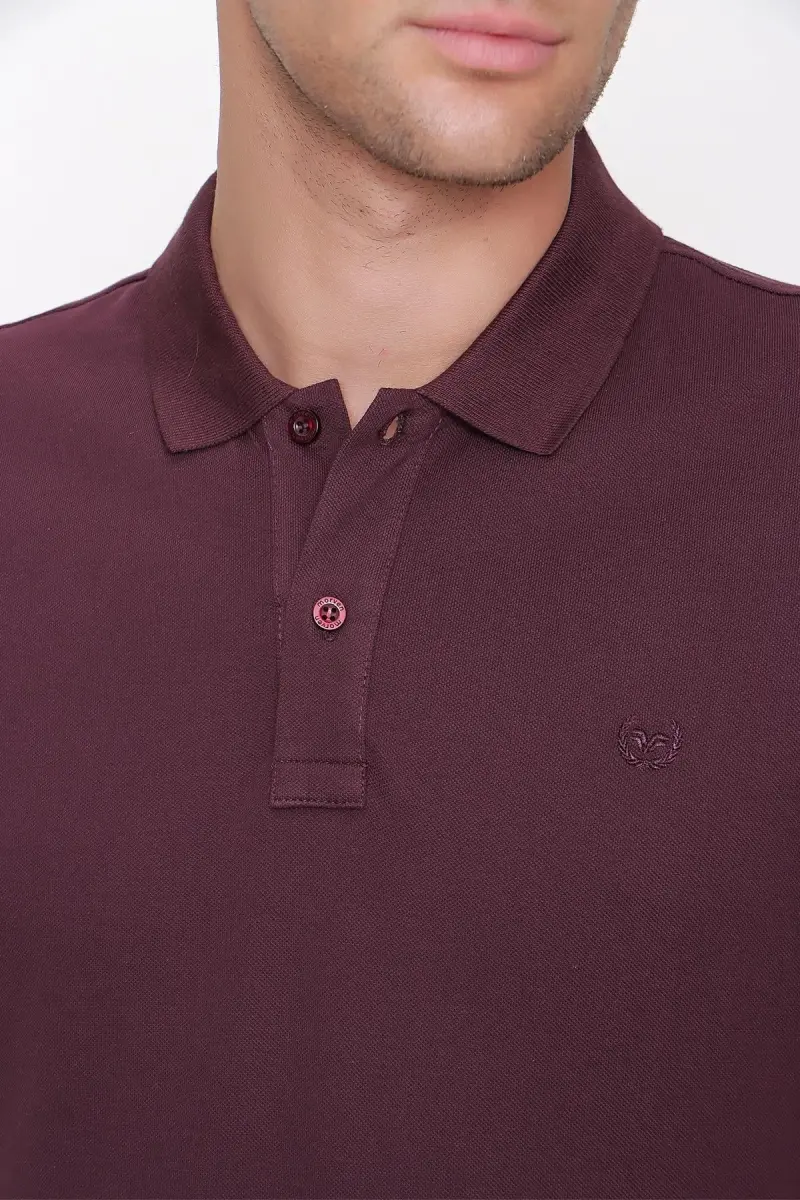 Erkek Mürdüm Basic Düz %100 Pamuk Slim Fit Dar Kesim Kısa Kollu Polo Yaka Tişört