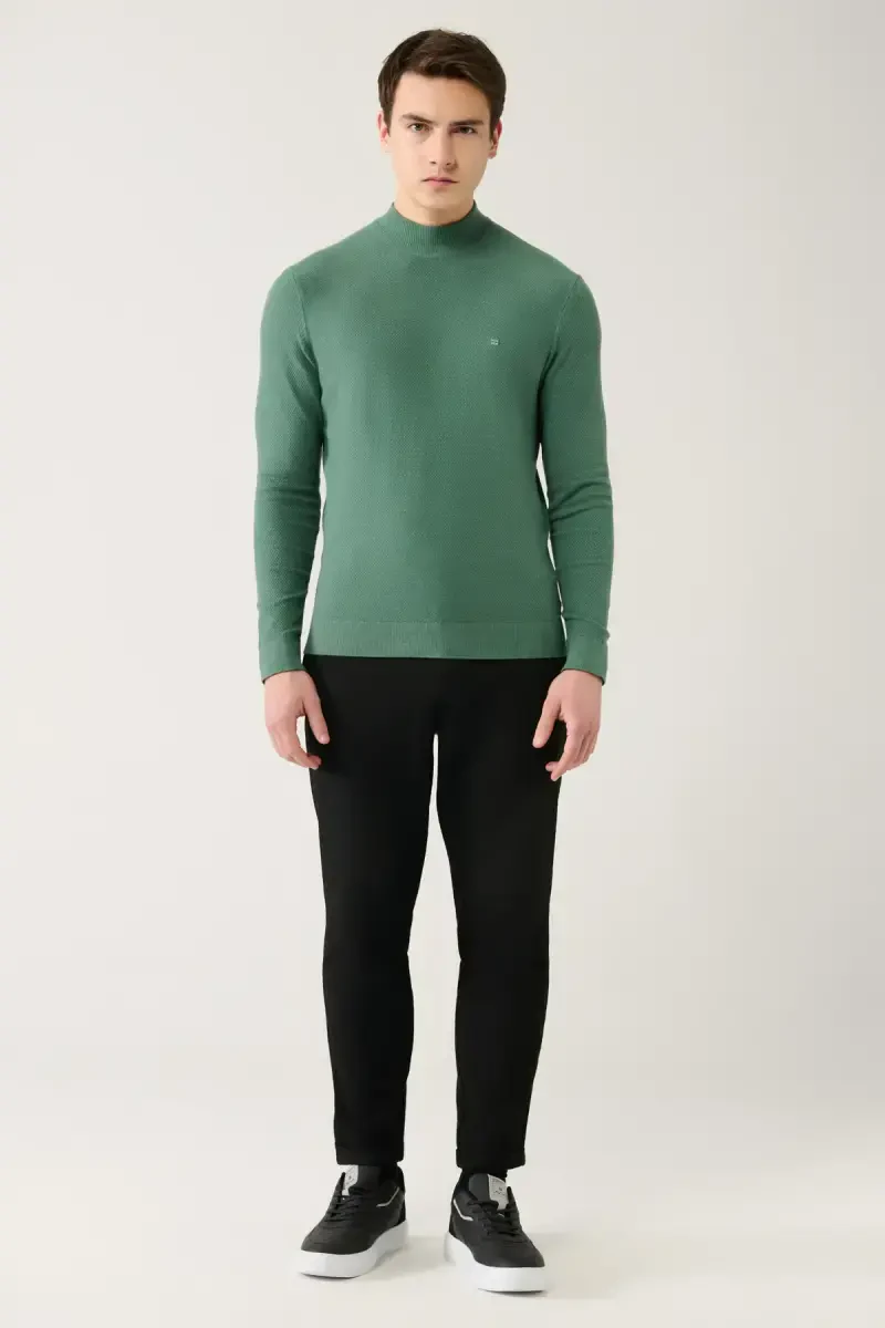 мужской свитер, свитер с воротником-гольфом, свитер с рисунком, синий свитер, A32Y5166